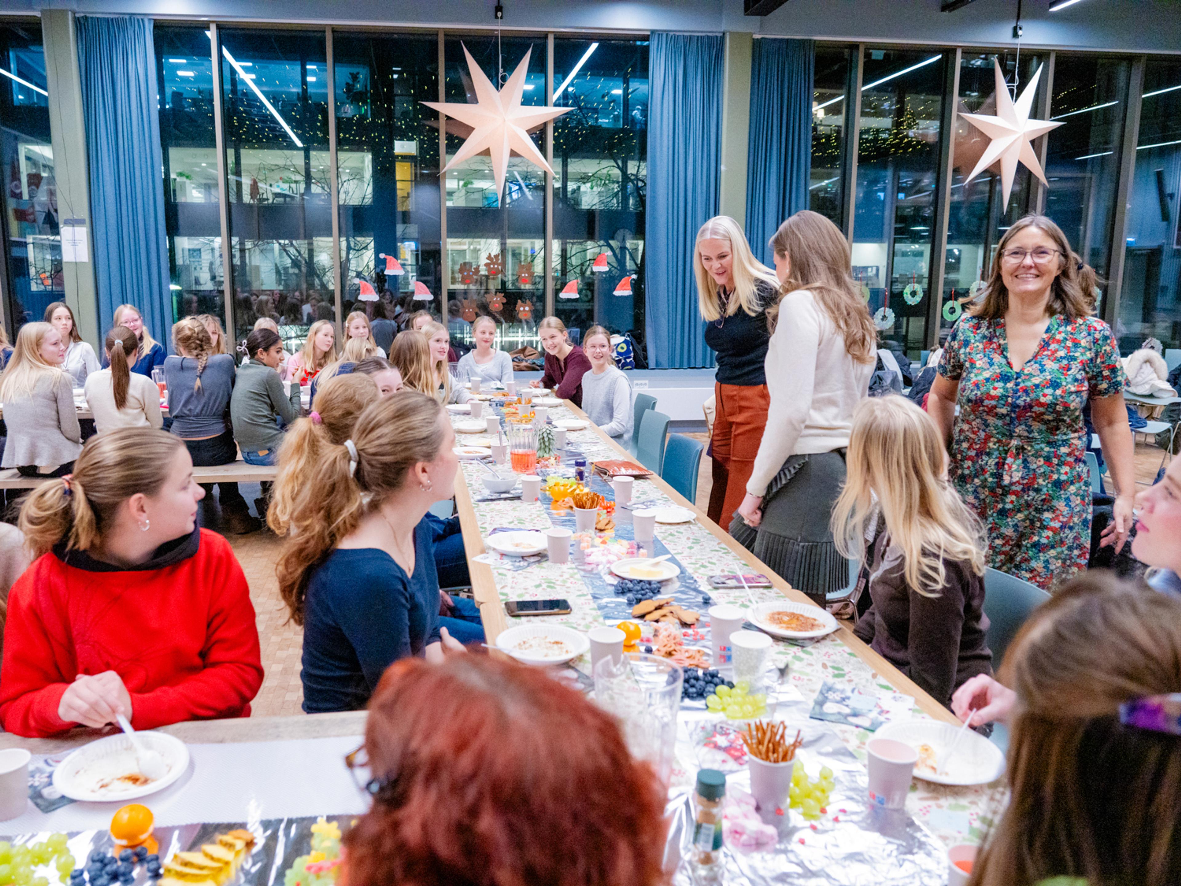 Midt i julekonsertsesongen møttest Det Norske Jentekor til øving, graut og huskonsert på Ruseløkka skule i Oslo. Den Høgvørde Kronprinsessa fekk vere til stades under den stemningsfulle juleavslutninga i går.