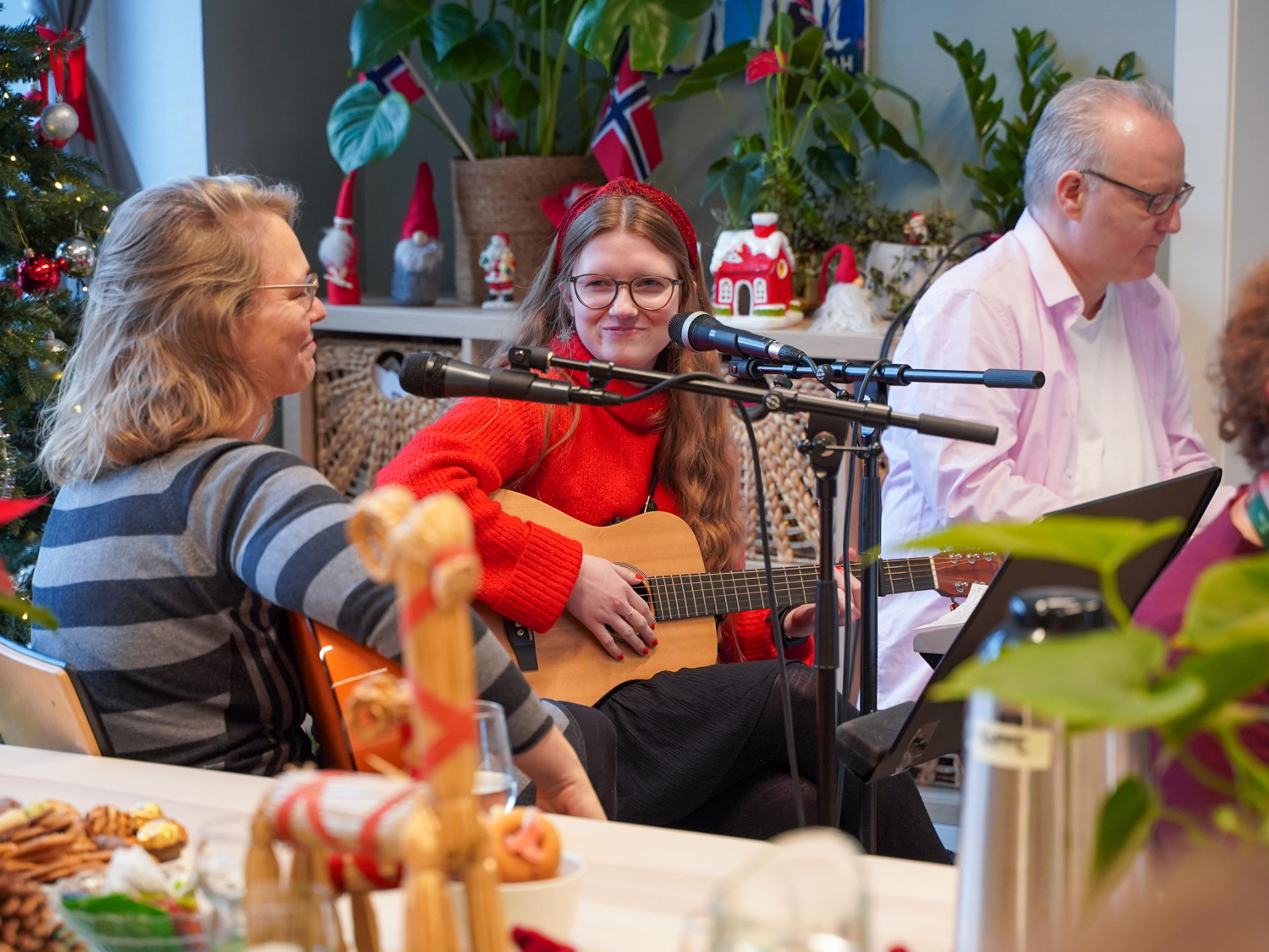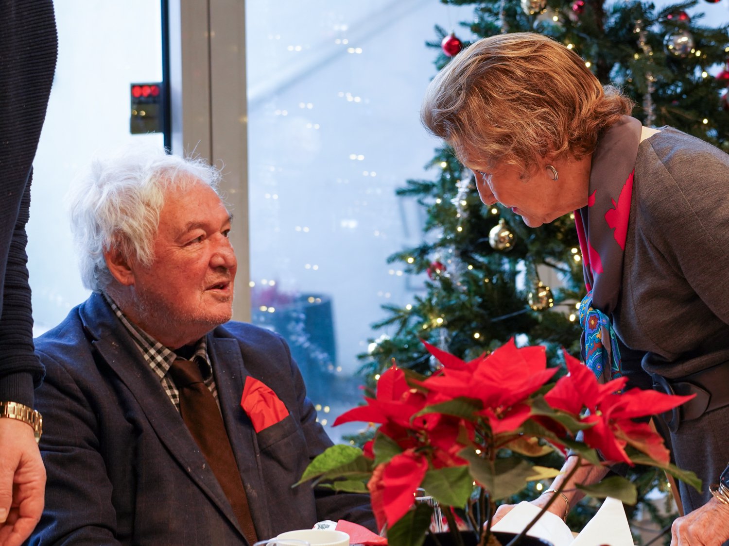 Besøket vart avslutta med musikk, julekaker, te og gløgg i fellesstova. Dronning Sonja møtte òg kunstgruppa, og leiaren ga eit eigenprodusert kunstverk i gåve til Dronninga.