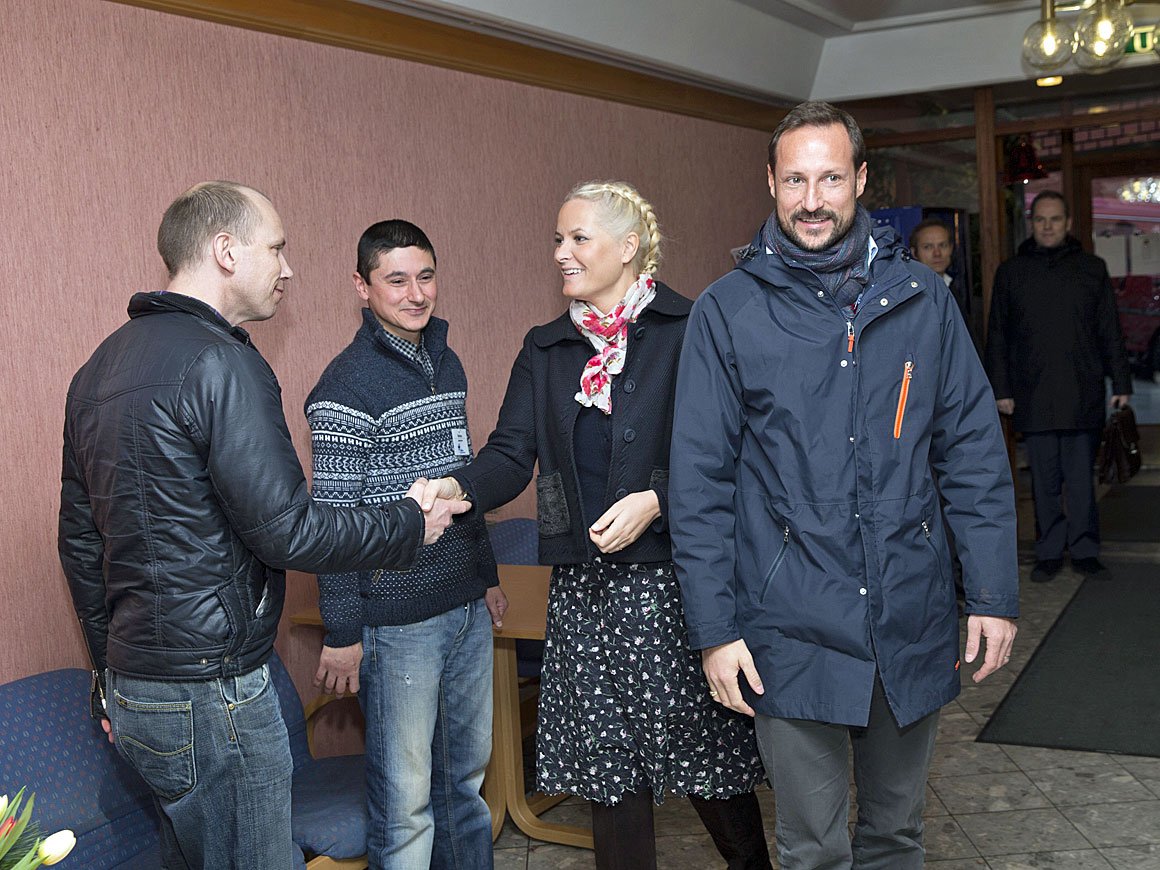 Etter servering hadde Kronprins Haakon og Kronprinsesse Mette-Marit en rekke samtaler med gjestene hos Blå Kors Kontaktsenter i Møllergata 28.
