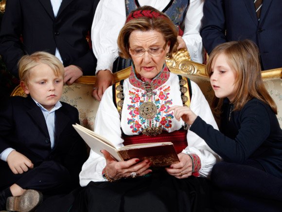 I dag var Kongefamilien samlet til julefotografering på Slottet. Fotograferingen fant sted i røde salong, der Hennes Majestet Dronningen leste eventyr.