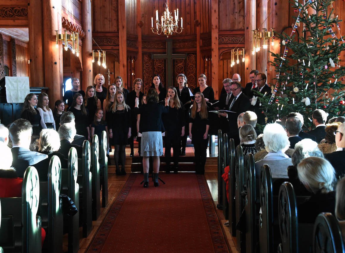 Sokneprest Jan-Erik Heffermehl tok imot Kongefamilien og førte følgjet inn i kapellet. Under preika tok soknepresten utgangspunkt i første kapittel i Johannesevangeliet. Dei musikalske innslaga stod Aejin Park og Holmenkollen Kammerkor for.