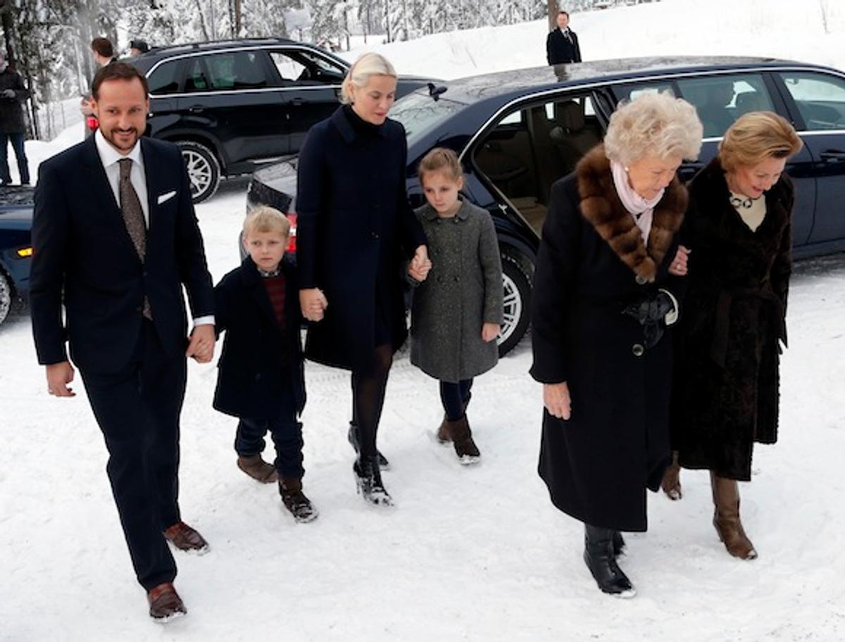 Hans Majestet Kongen, Hennar Majestet Dronninga og Kronprinsfamilien deltok ved høgmessa i Holmenkollen kapell 1. juledag. Tanta til Kongen, Prinsesse Kristine Bernadotte, var òg til stades.
