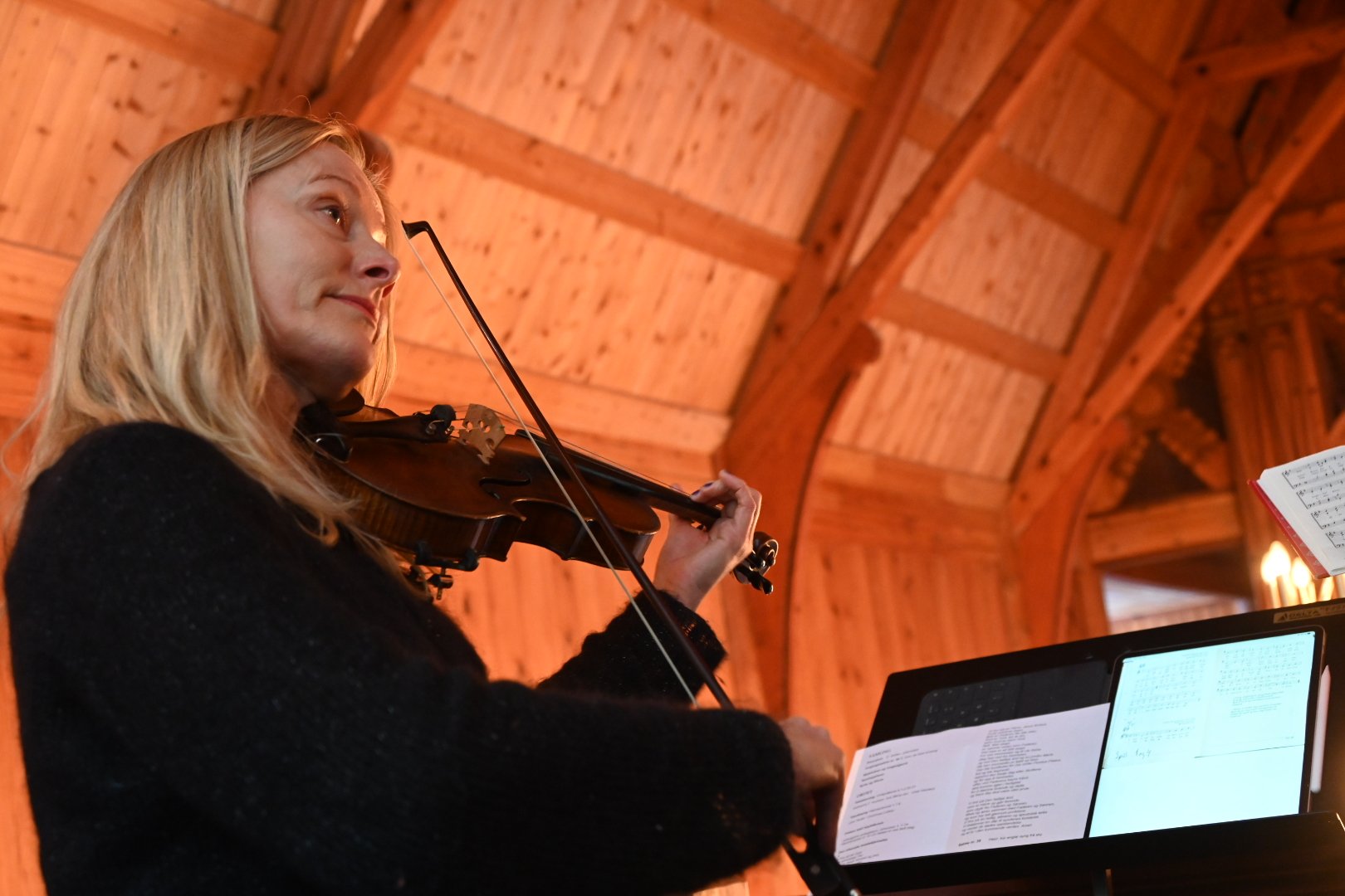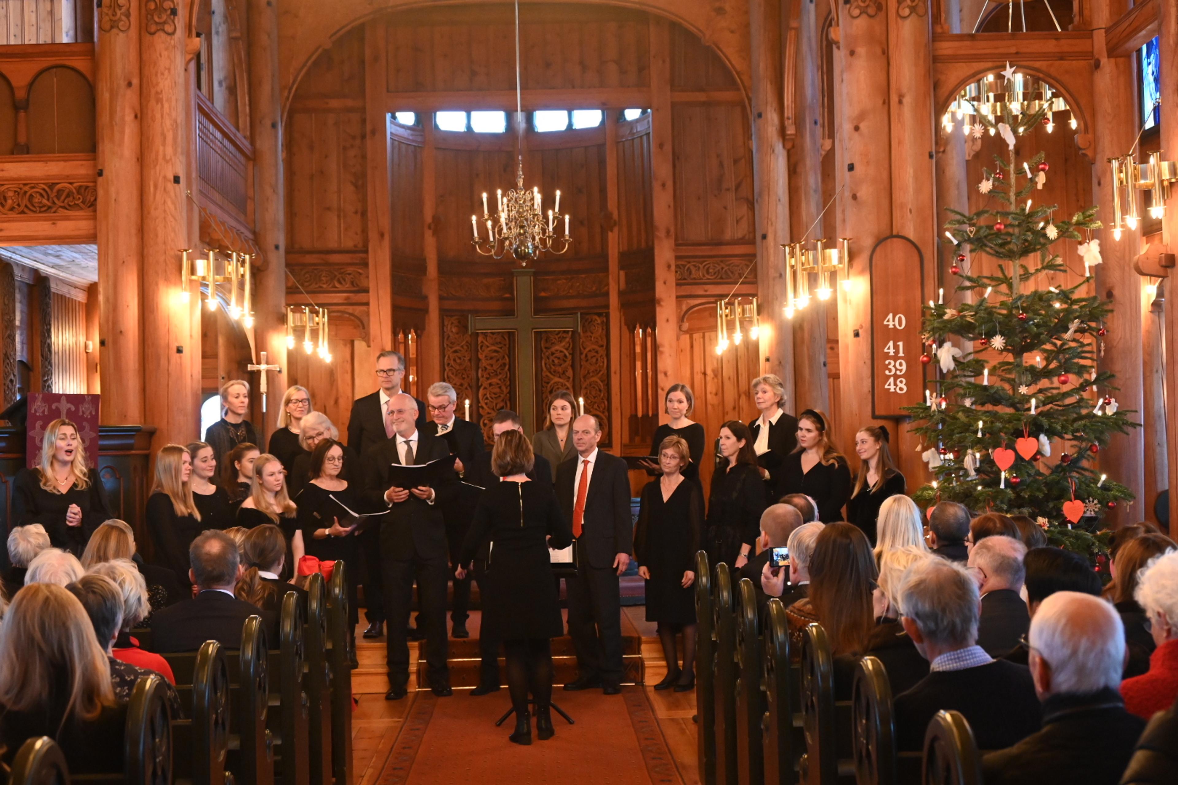 Gudstjenesten ble avsluttet med «O Helga natt» fremført av Katharina Frogner Kockum og kammerkoret.