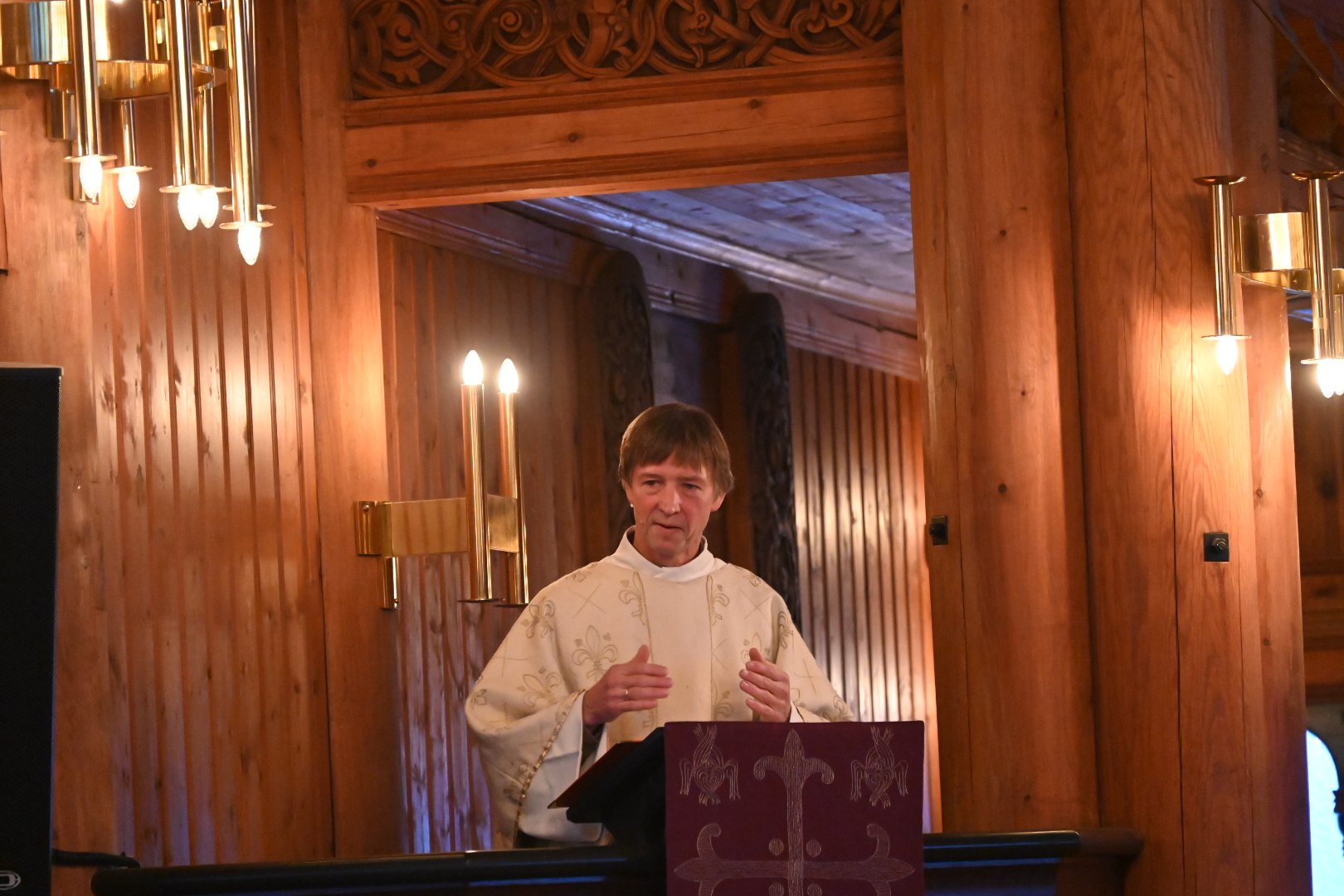 Tekstlesningen fra Hebreerbrevet 1. kapitel versene 1-6 ble foretatt av Inger Margrethe Magnus. Holmenkollen kammerkor fremførte John Rutters «Christmas Lellaby» før prekenen. I sin preken talte sognepresten over Johannes-evangeliets første kapittel – versene 1 til 14.