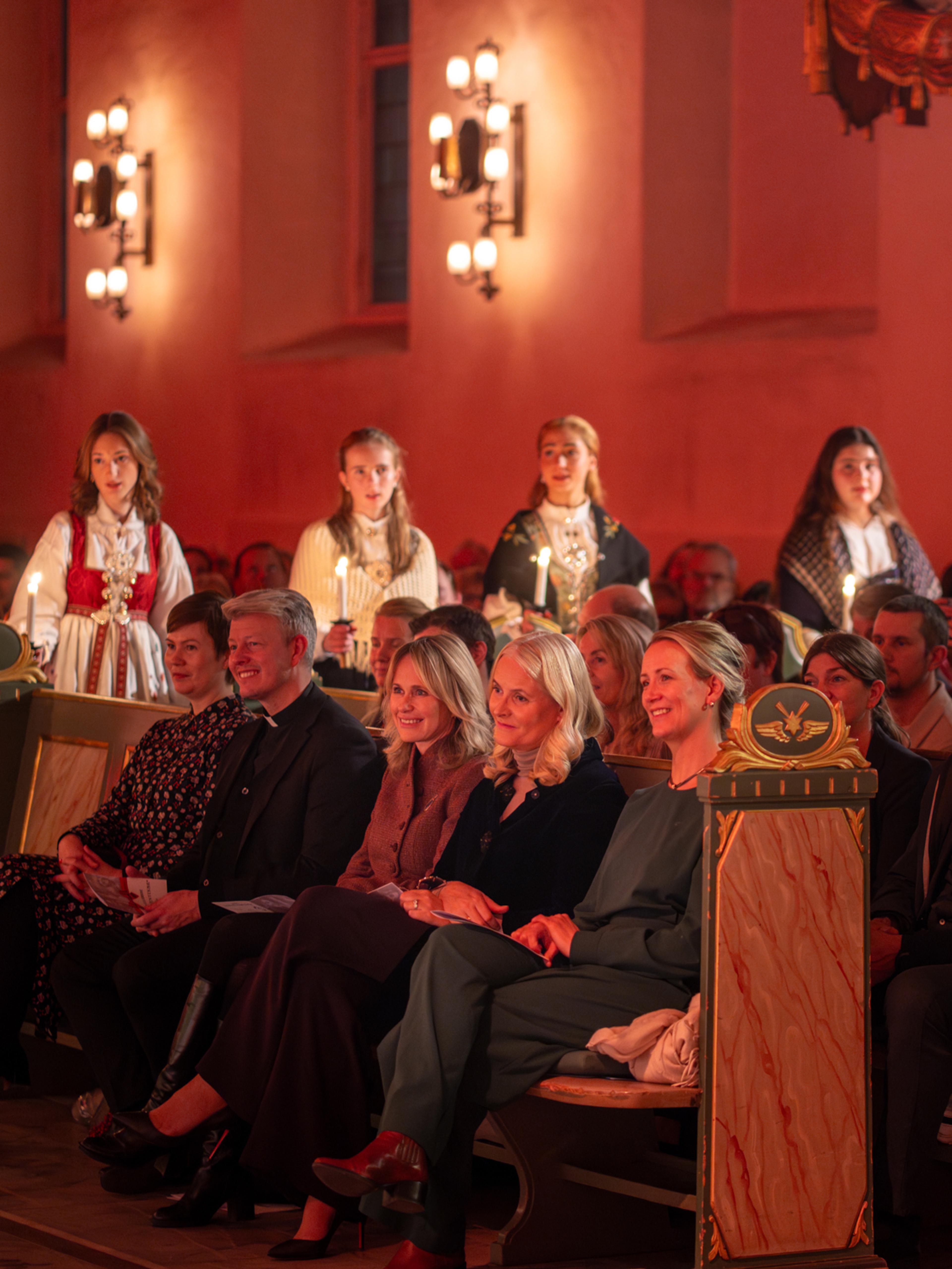 Hennes Kongelige Høyhet Kronprinsessen var til stede under den høytidsstemte desemberkvelden i Oslo domkirke i går.