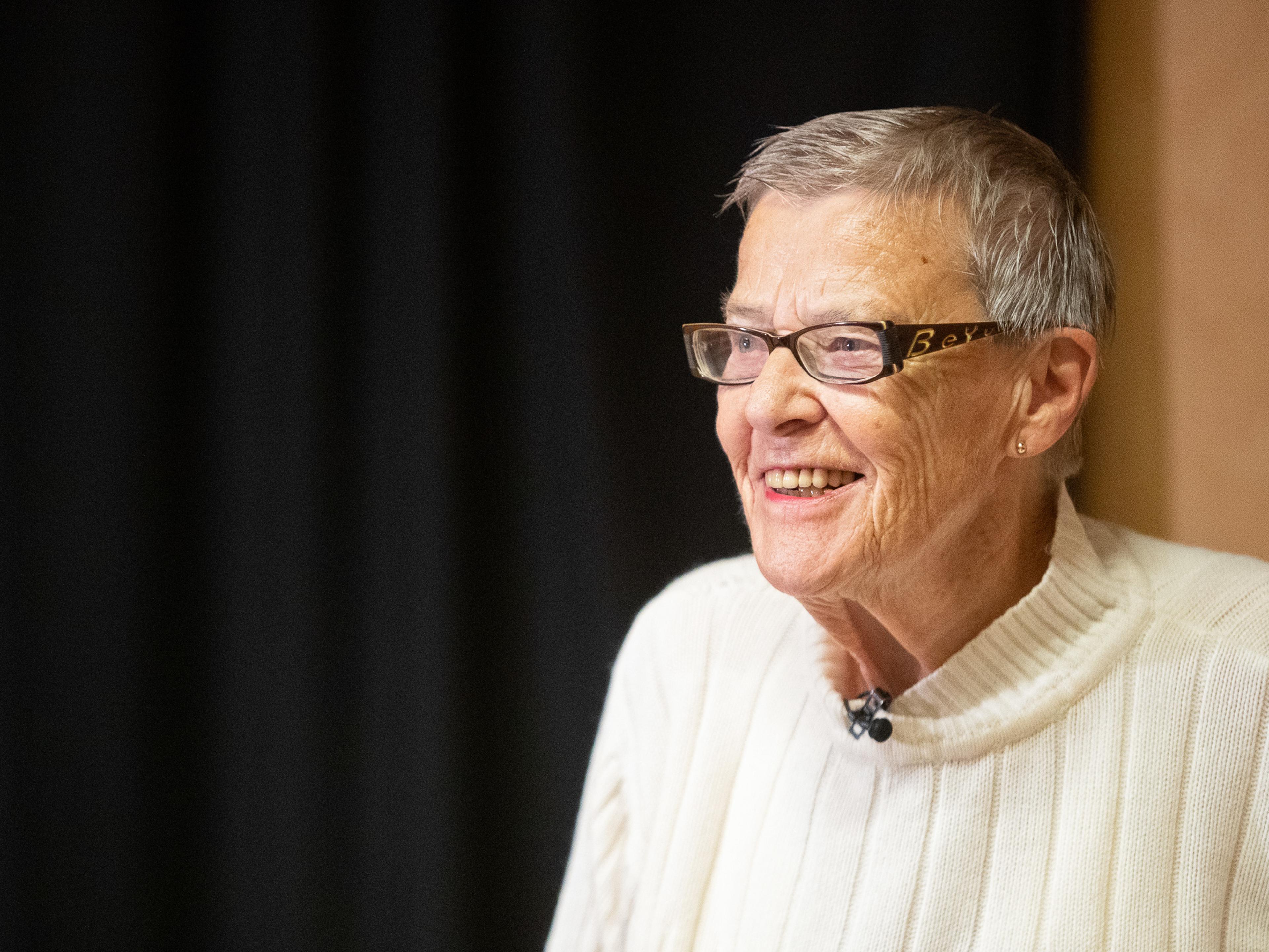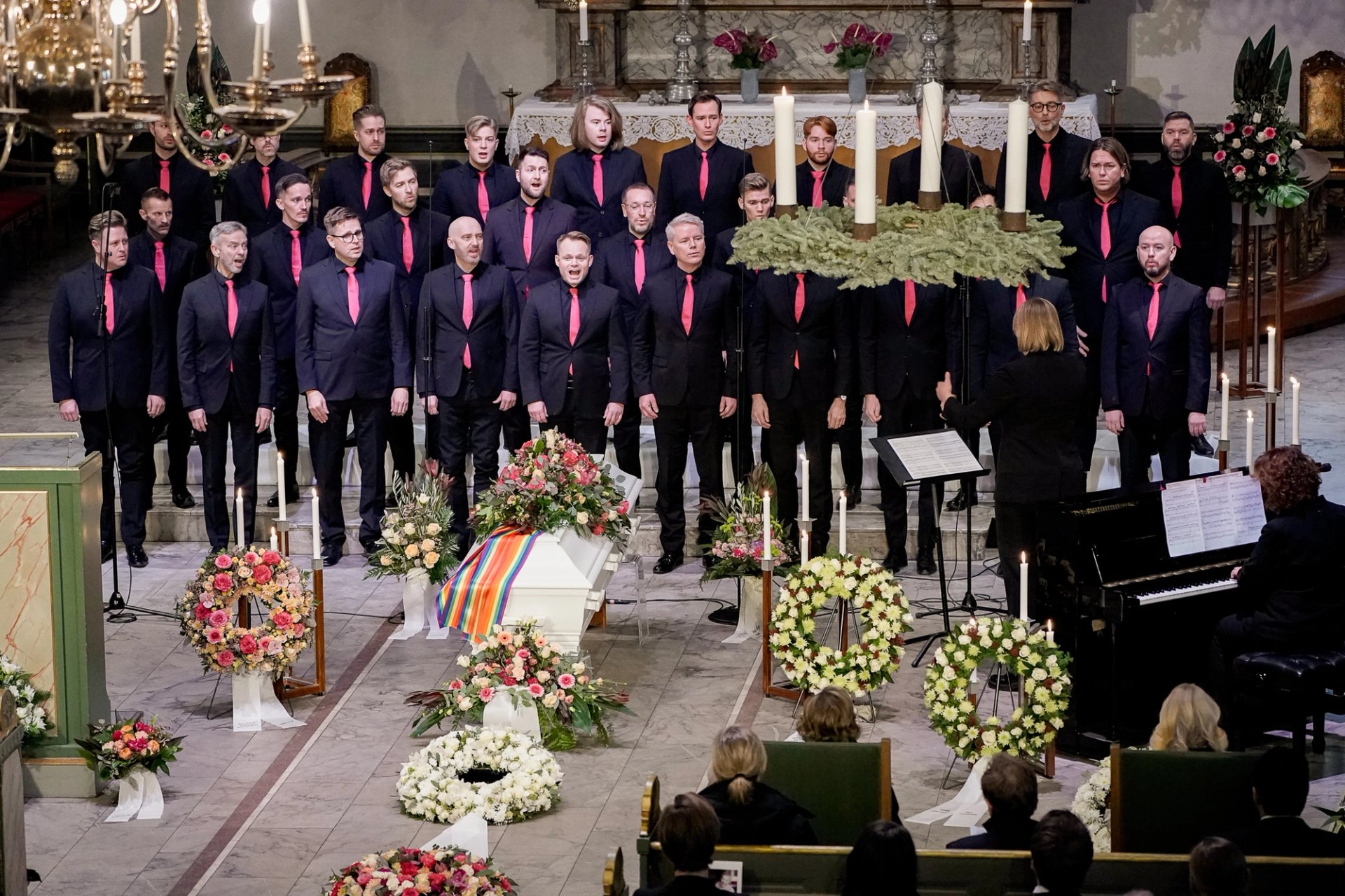 – Det er to benker i Noreg som ber namnet til Kim Friele. Den første er benken utanfor Nationaltheatret i Oslo, der ho sat i fleire år tidleg på 60-talet og speida etter likesinna. Den andre benken vart avduka på Vågsallmenningen i Bergen sist mai. Det er ein benk som er sett saman av tre breie benker, som er open, inkluderer, inviterer alle til å setje seg der, sa professor emeritus og venn Halvor Moxnes, som las minnetalen.