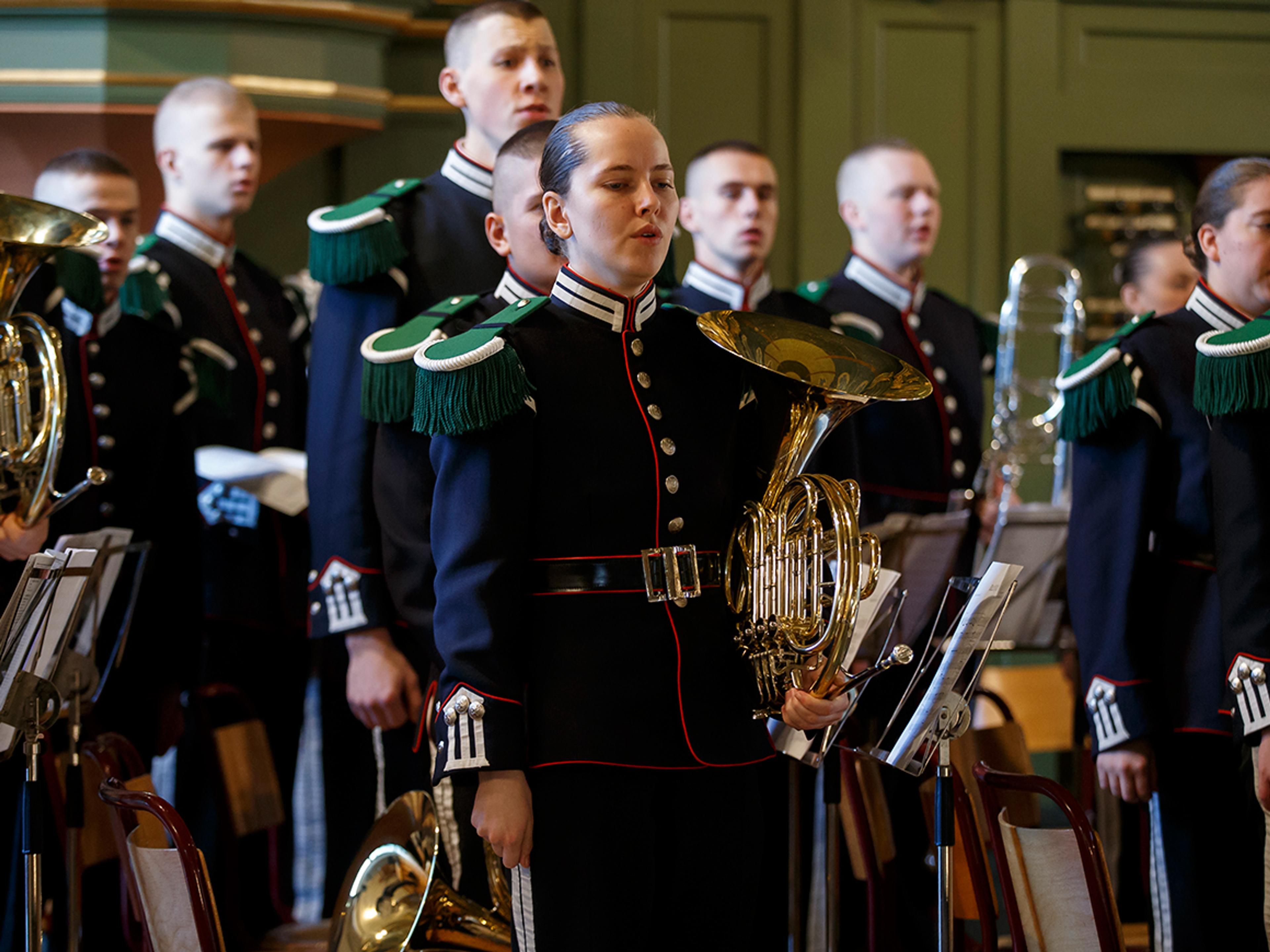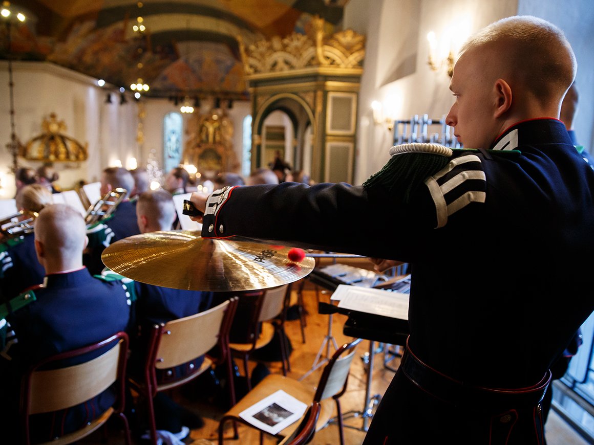 Aller først ble fanen ført inn, og alle ble stående til fanen var på plass. Hans Majestet Kongens Gardes Musikkorps spilte preludium: Sammy nesticos "Silent night".