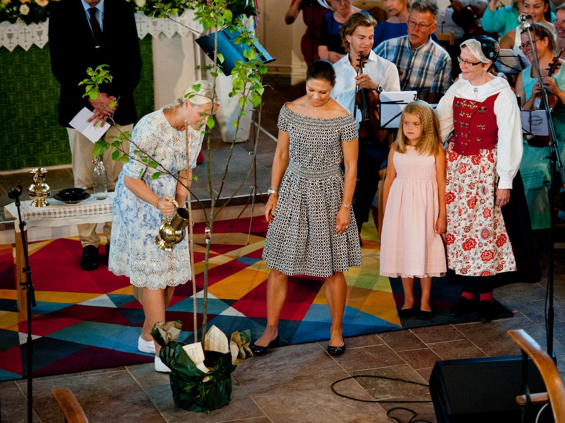 I kveld var Kronprinsesse Victoria og Kronprinsesse Mette-Marit til stede under en gudstjeneste i Strømstad krike, der de to Kronprinsessene, som en del av seremonien, ga et epletre vann fra Pilegrimsflasken.
