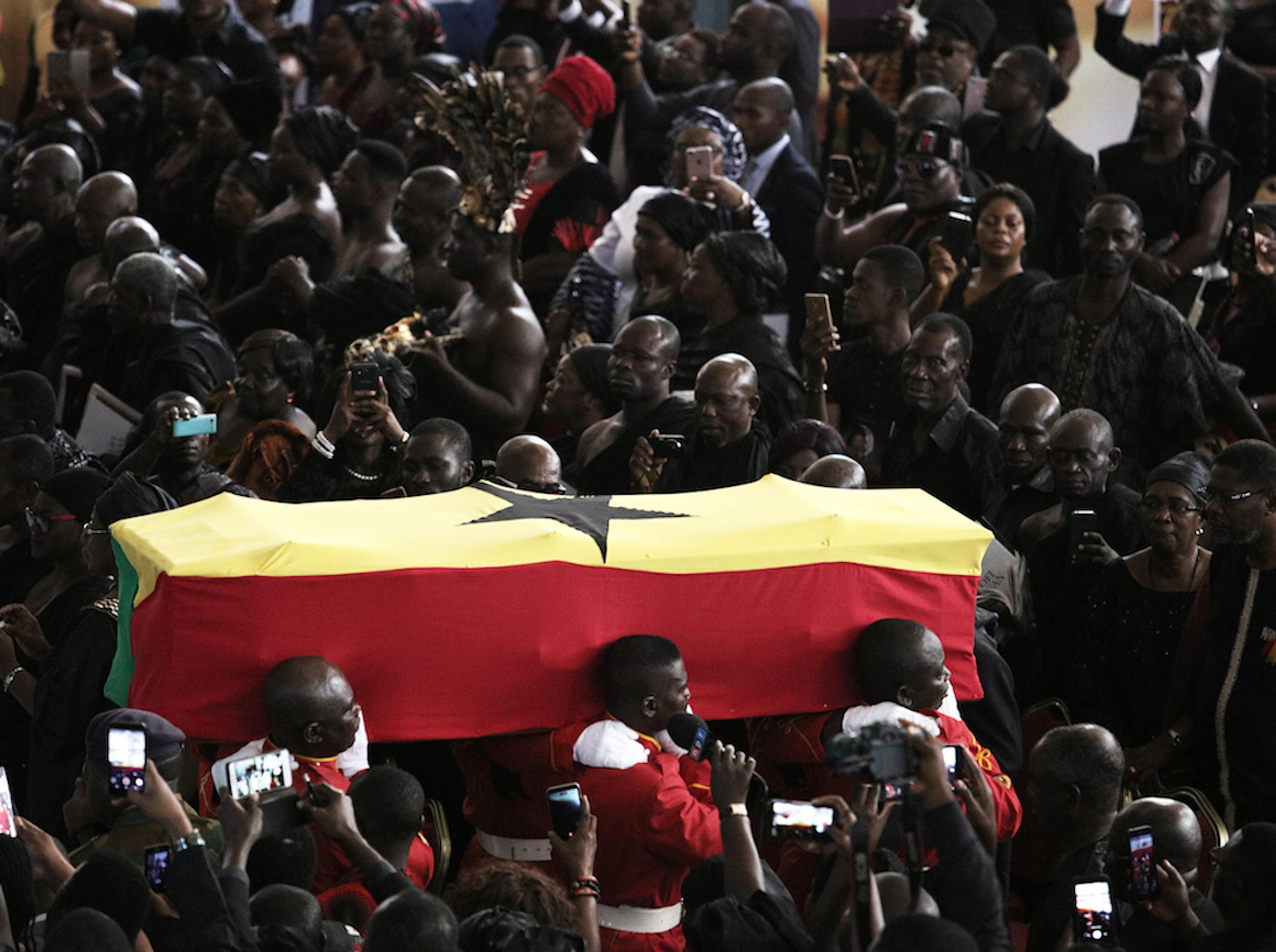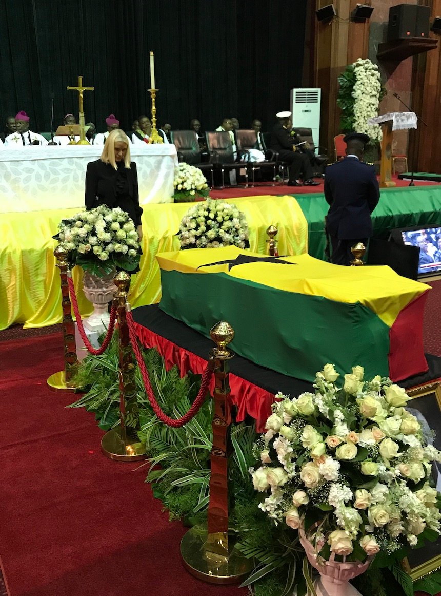 Mange ghanesarar har vist Kofi Annan den siste ære i Accra Conference Centre dei siste dagane. I dag var ei rekkje statsleiarar til stades under gravferda i Accra.