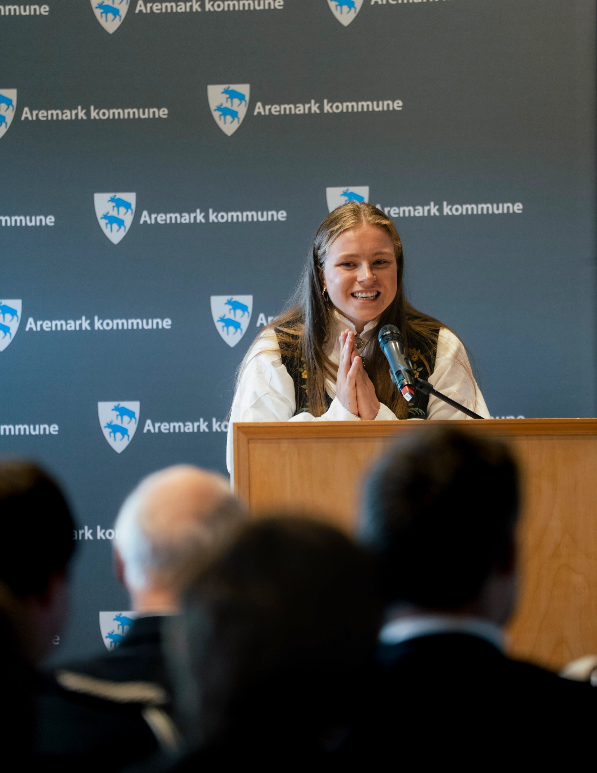 – Som vi alle vet, kan det med vilje og innsats skapes mye ut av lite. Og store talenter kan vokse opp i små samfunn. Ordføreren har allerede nevnt Henriette Jæger, men også vi er veldig stolte av henne.