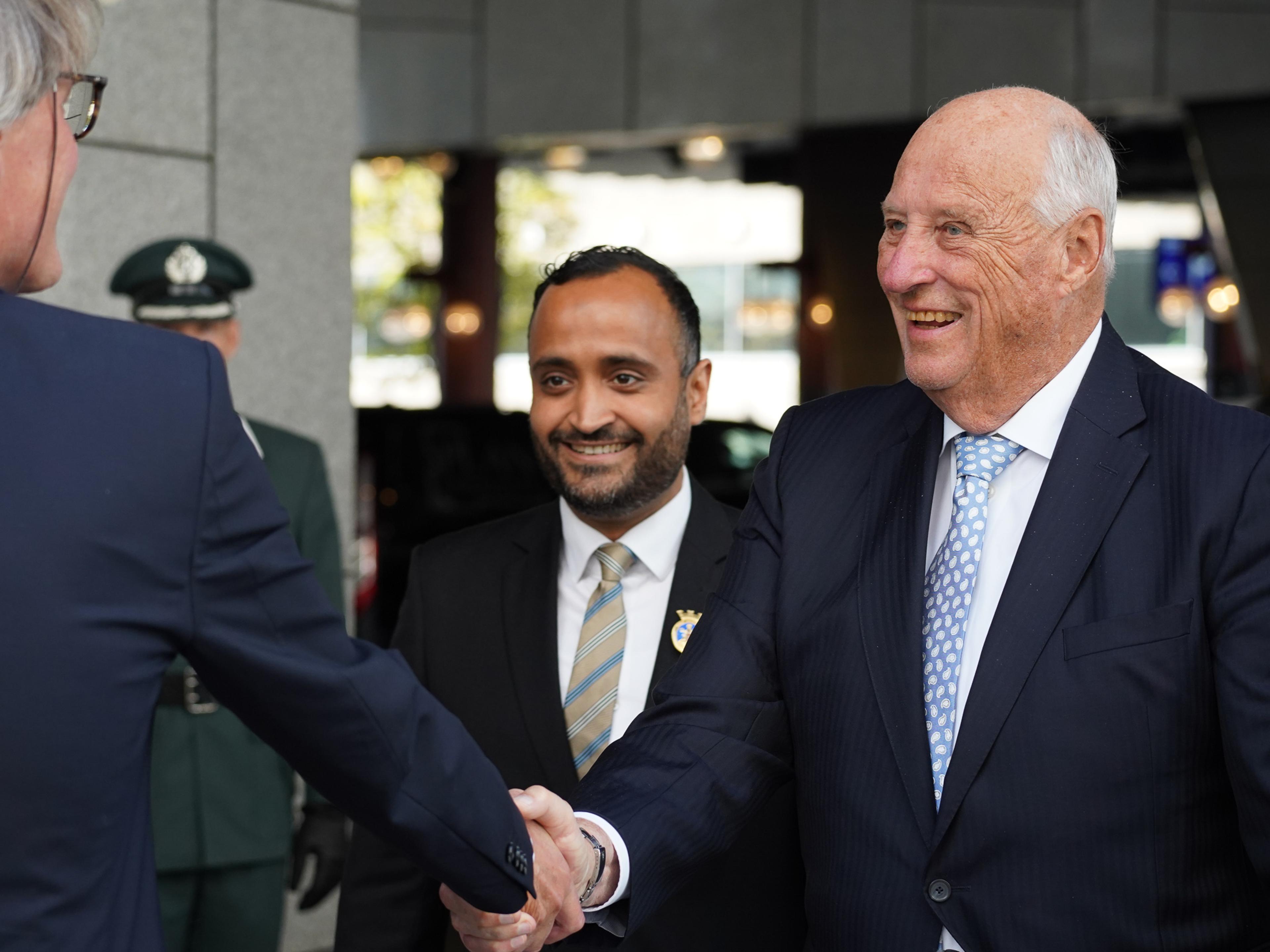 I kveld er Kong Harald til stede ved regjeringens bankett i Oslo rådhus til ære for prisvinnerne for 2020 og 2022.