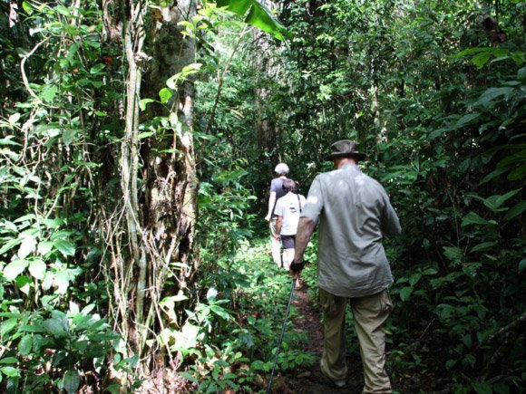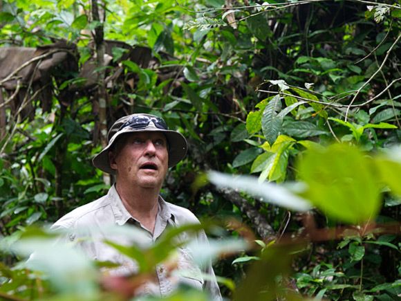Kongen fikk være med landsbyens beste jegere på vandring i regnskogen. Jegerne demonstrerte hvordan de imiterer byttedyrenes lyder når de jakter.