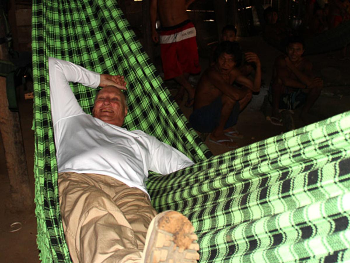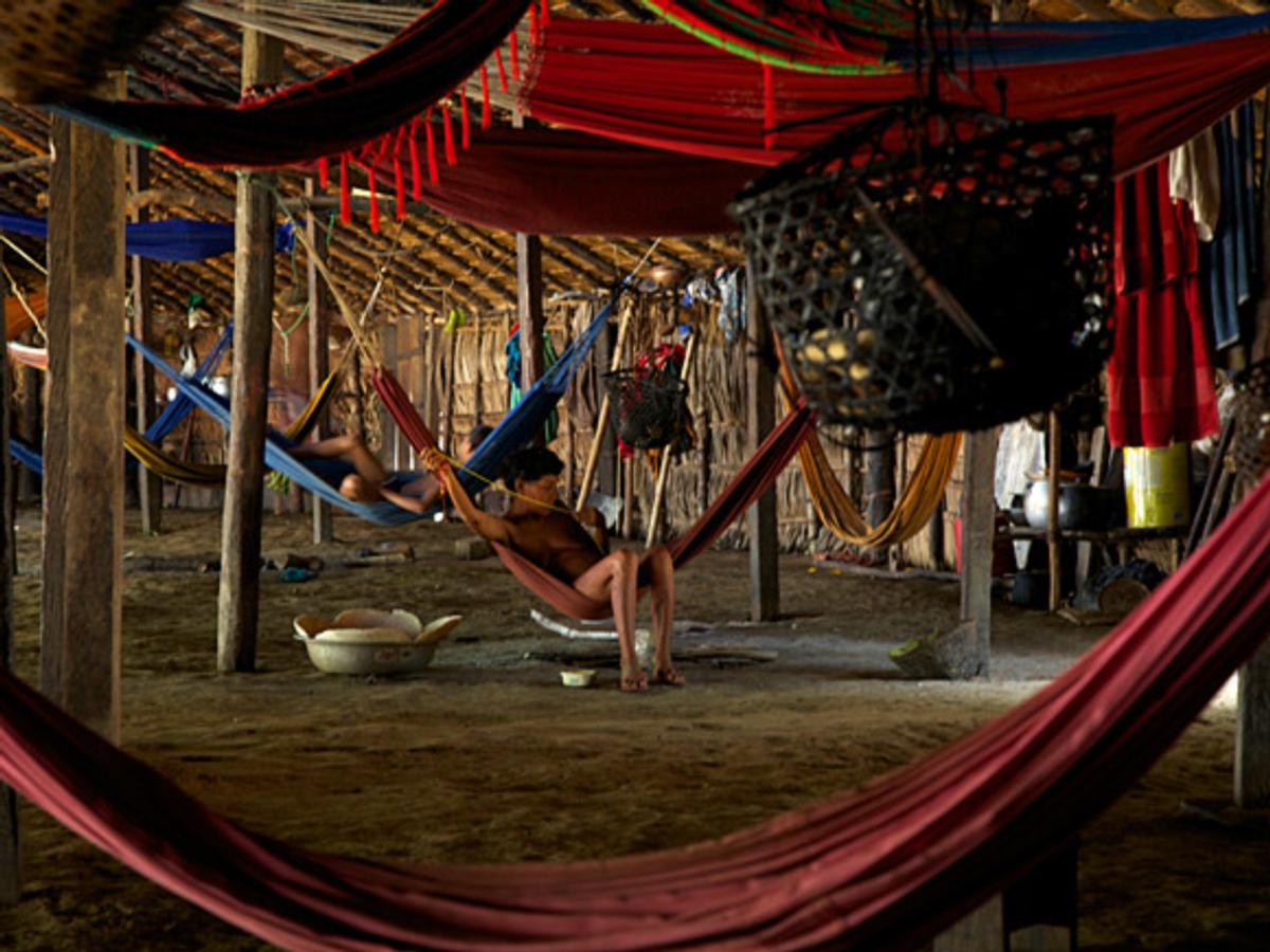 Landsbyen Demini består av et stort, sirkelformet hus med en åpen plass i midten. Alle de 120 innbyggerne lever i dette huset, og sover i hengekøyer festet under taket. Små bål holder temperaturen oppe gjennom natten. Her ble Kong Harald tildelt sin egen hengekøye for dagene oppholdet skulle vare.