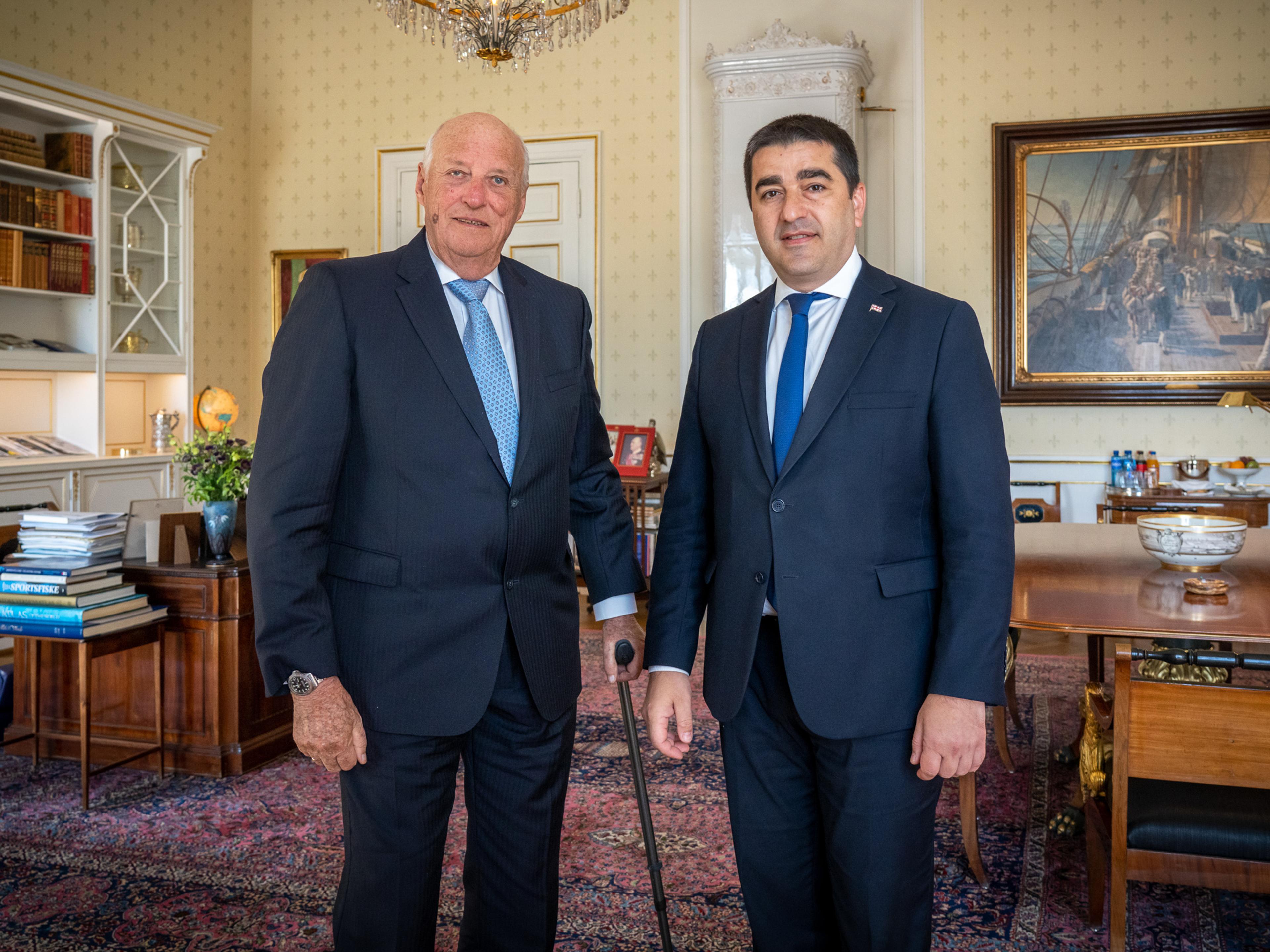 Georgias parlamentspresident Shalva Papuashvili er på offisielt besøk i Norge. Hans Majestet Kongen tok i formiddag imot parlamentspresidenten til audiens på Det kongelige slott.