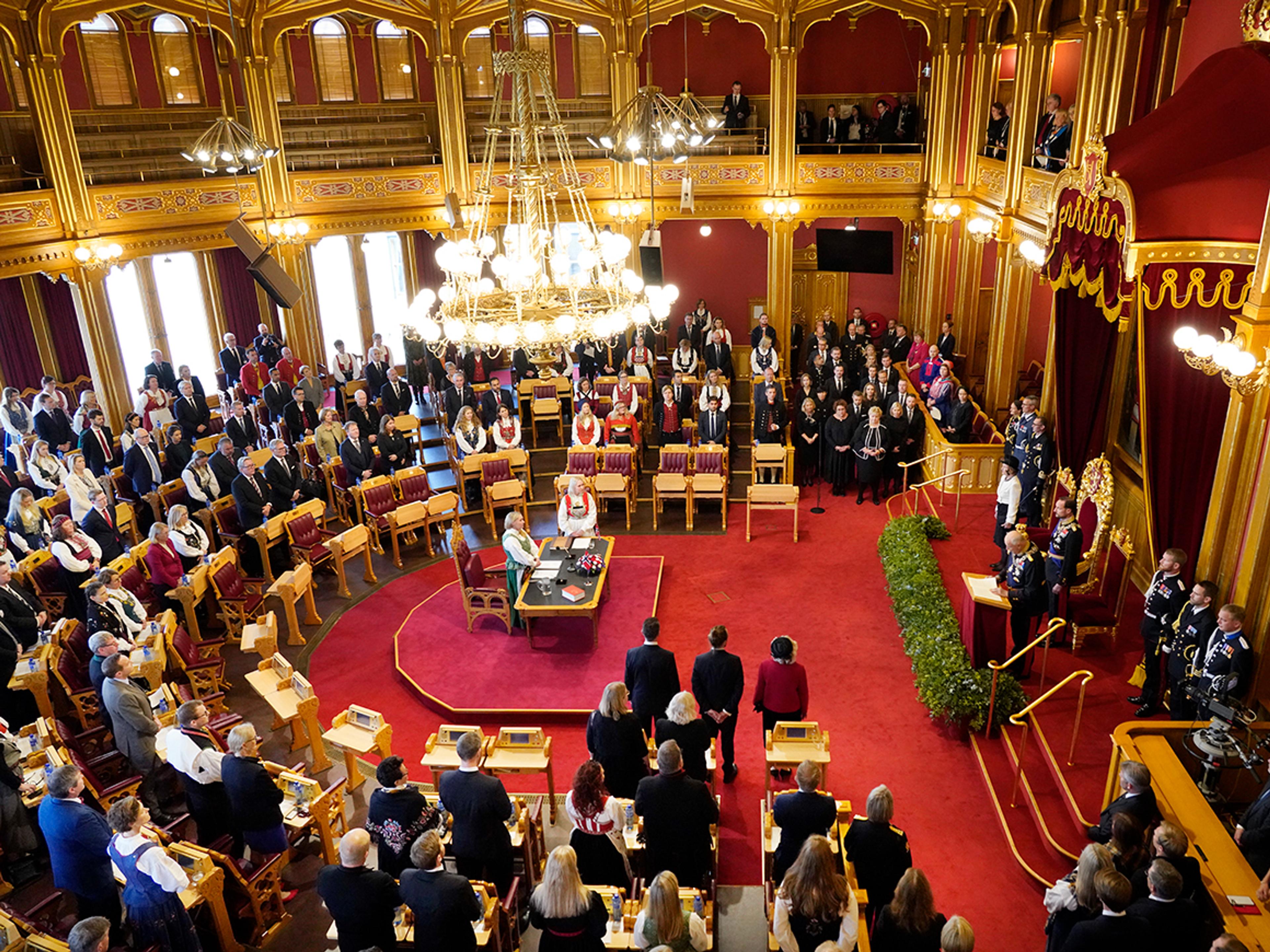 Deputasjonen følgjer Dei kongelege så lenge dei er i Stortingsbygningen.