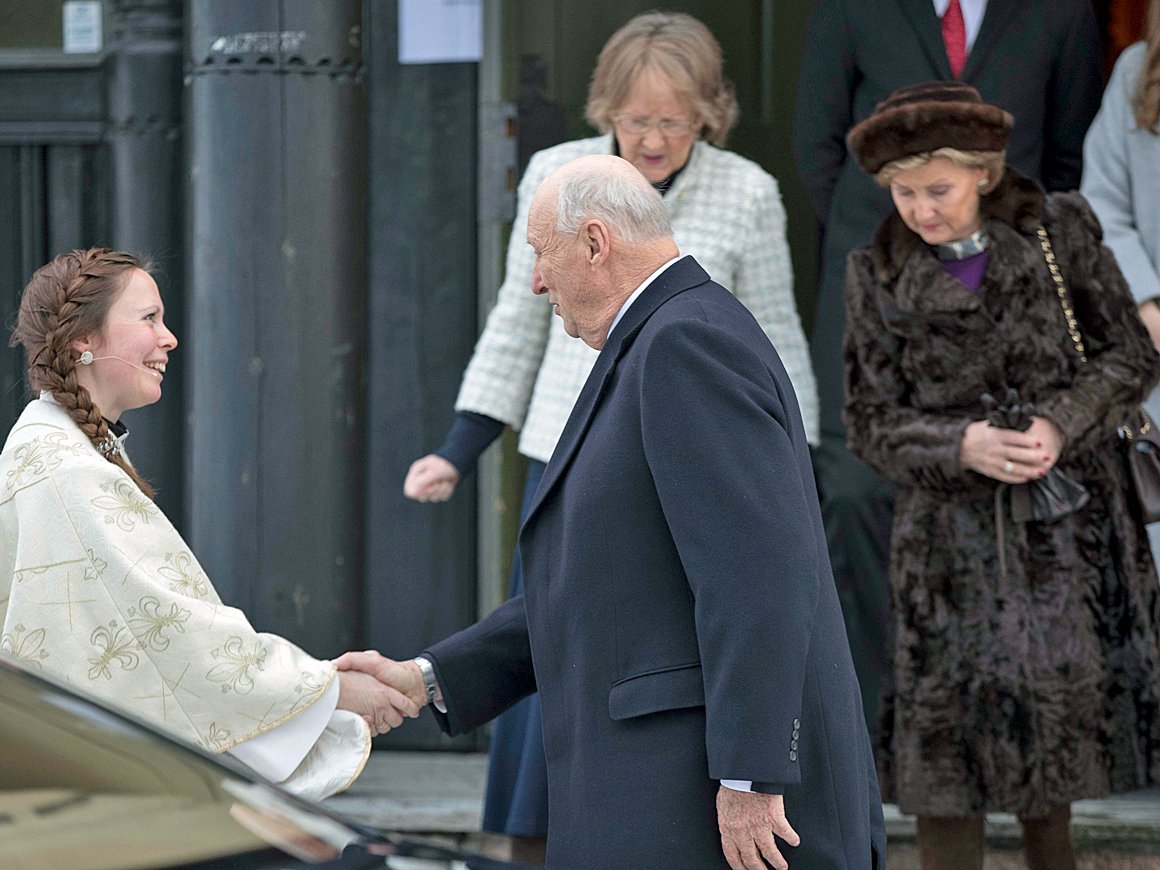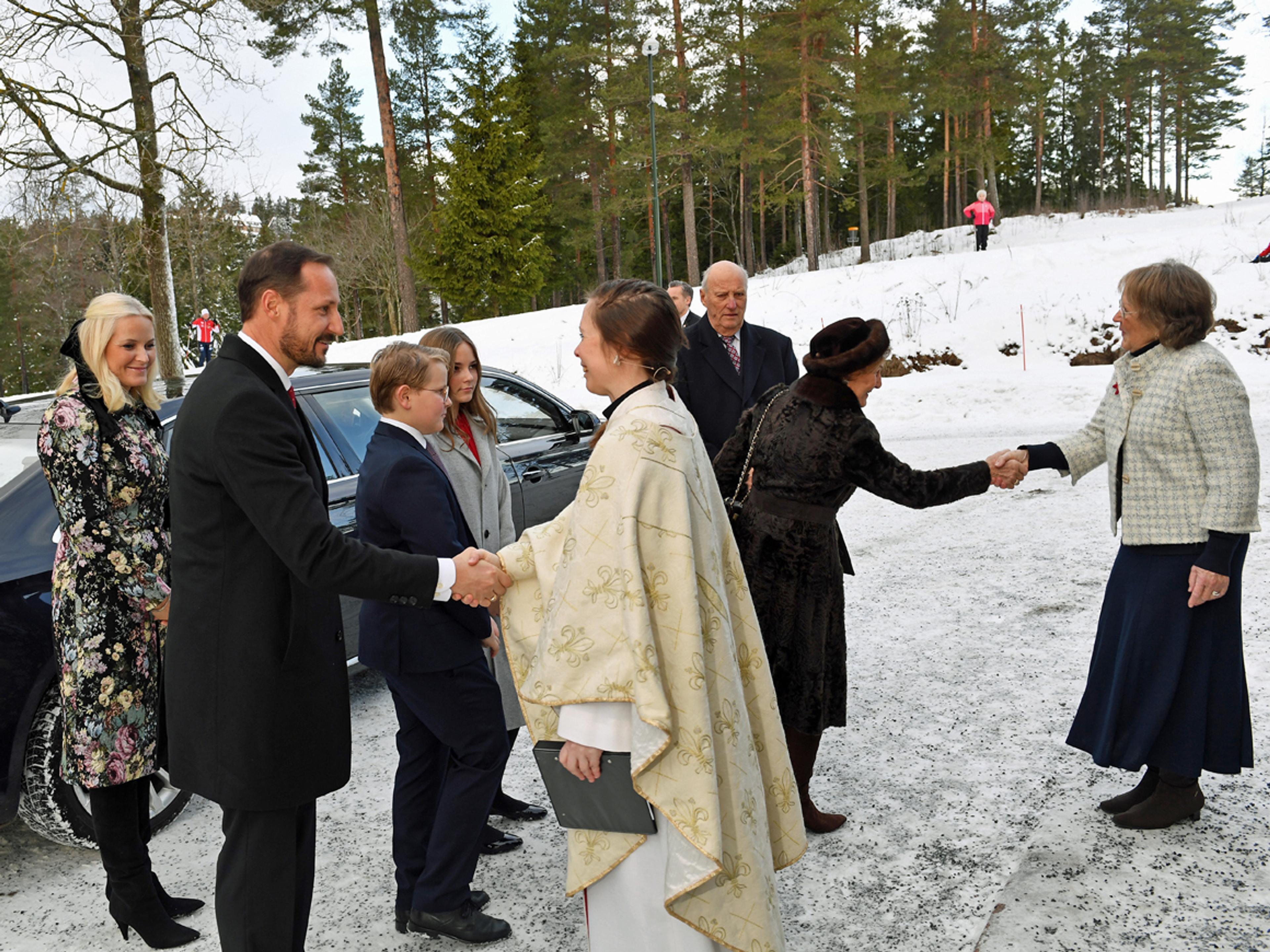 I vakkert vinterlandskap ankom Deres Majesteter Kongen og Dronningen, Deres Kongelige Høyheter Kronprinsen, Kronprinsessen, Prinsesse Ingrid Alexandra og Prins Sverre Magnus kapellet med utsikt over Oslo by.