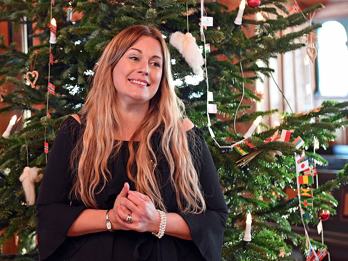 Kongefamilien ble tatt imot på kirketrappen av forrettende prest, kapellan Silje Karlsen og kirketjener Inger Margrethe Magnus da de ankom Holmenkollen kapell i formiddag. Det er tradisjon at Kongefamilien går til kirke i Holmenkollen kapell 1. juledag.