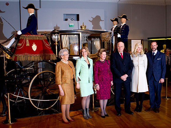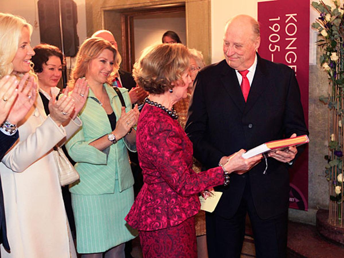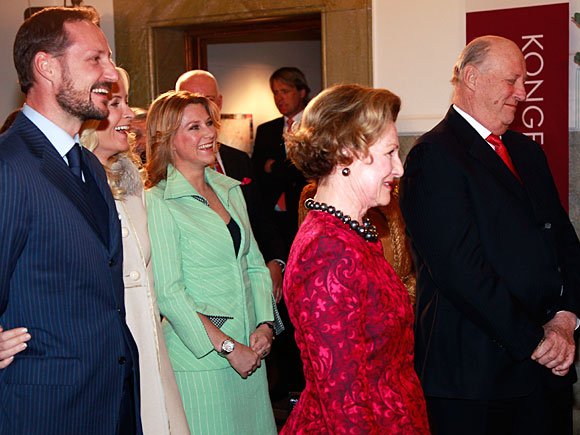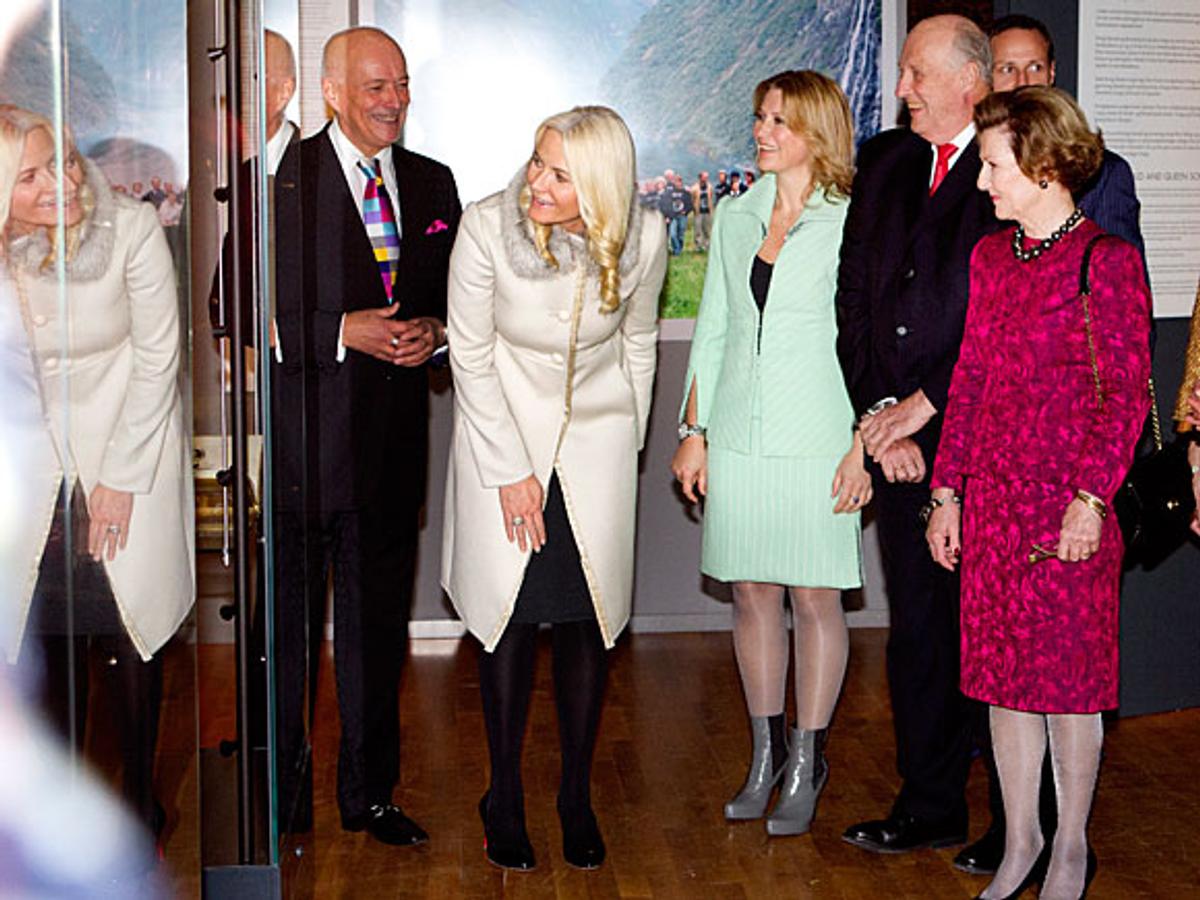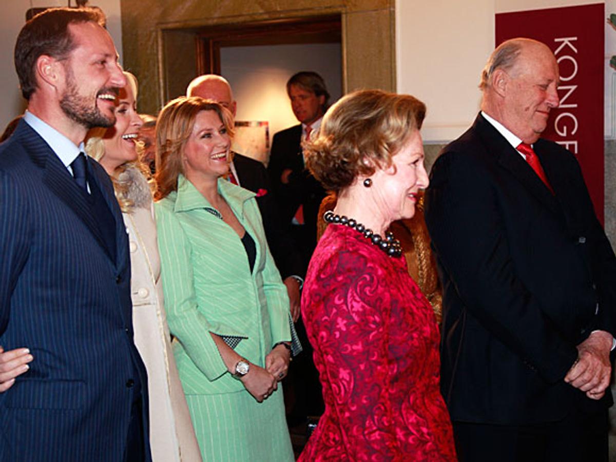 Kongeparet, Kronprinsparet, Prinsesse Märtha Louise og Prinsesse Astrid var alle til stades ved opninga av utstillinga "Kongelige reiser 1905-2005" ved Kunstindustrimuseet i Oslo i dag.