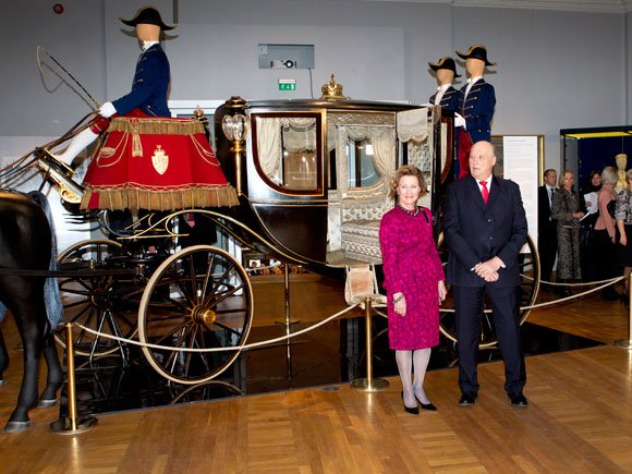 Utstillinga viser reiseutstyr, drakter, uniformer, ordenar og gåver gjevne til kongane og dronningane våre av utanlandske statsleiarar. Blant høgdepunkta er vogna, draktene og uniformene som vart laga til kroninga av Kong Haakon og Dronning Maud i 1906, og dessutan klesdraktene som vart brukte i samband med signinga av Kong Olav i 1958 og dagens kongepar i 1991.
