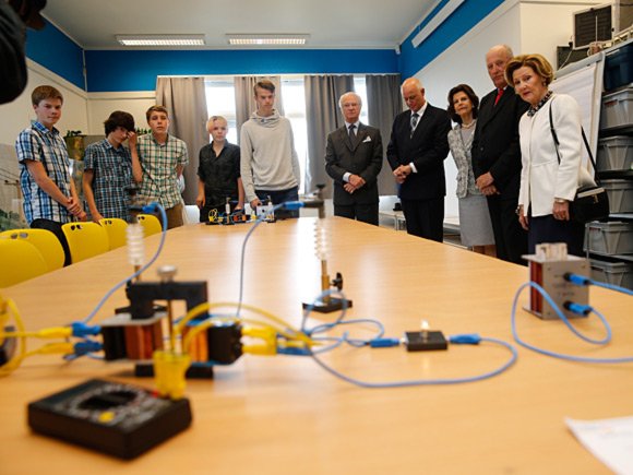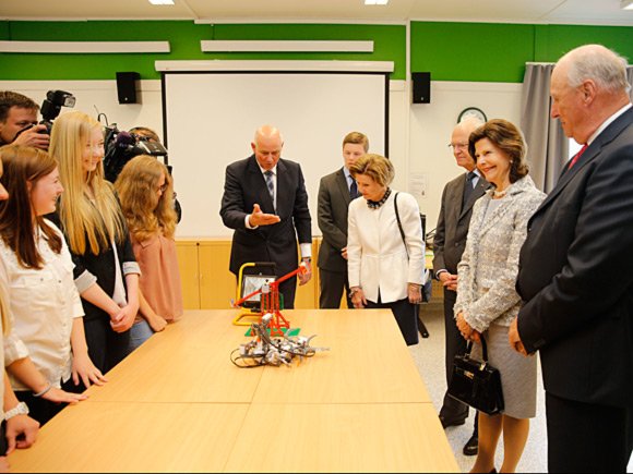 Elevene viste fram flere prosjekter de jobber på. På hver stasjon fikk Kongeparene høre litt om arbeidet og hvordan akkurat dette er relevant for næringslivet.