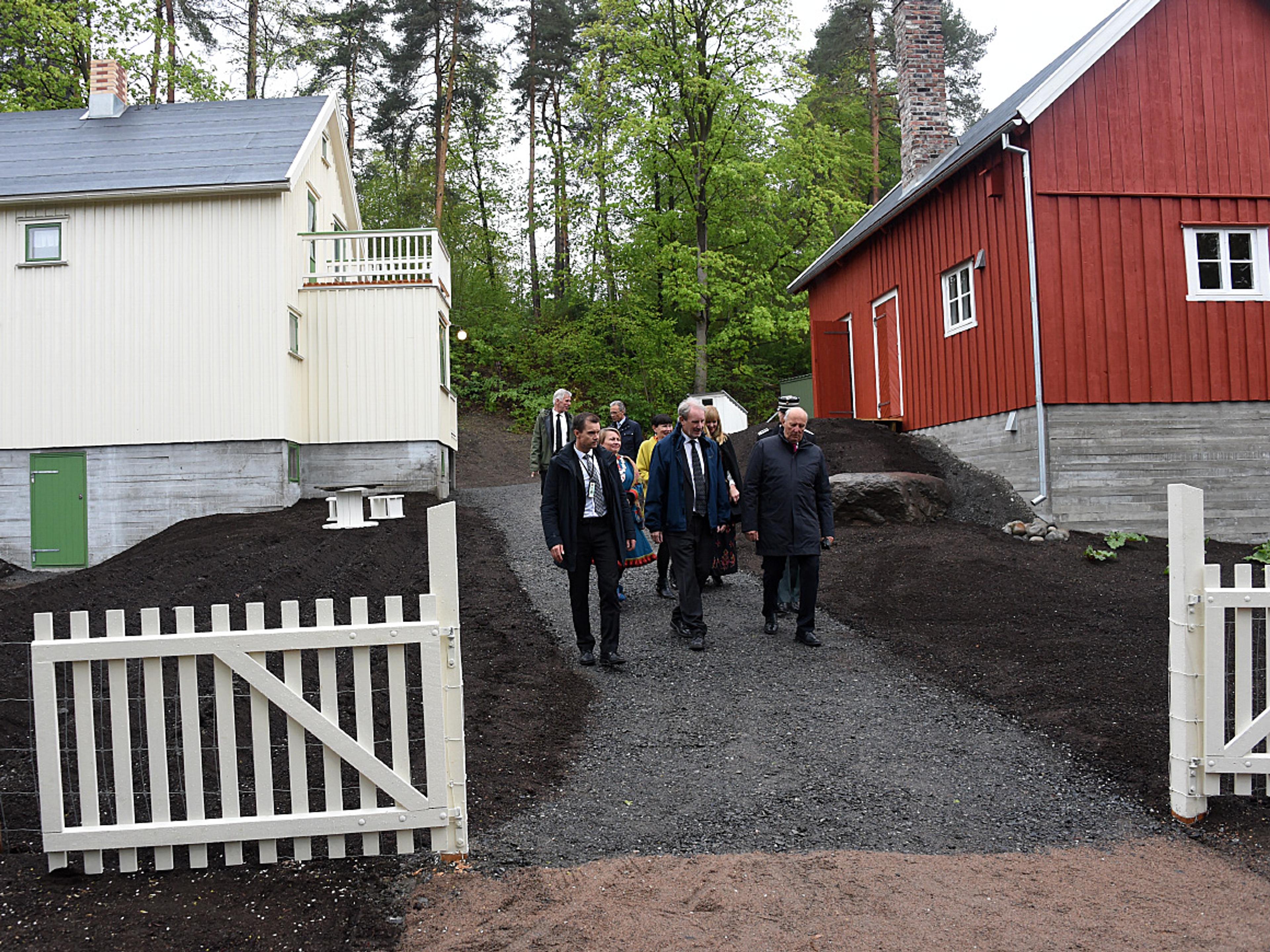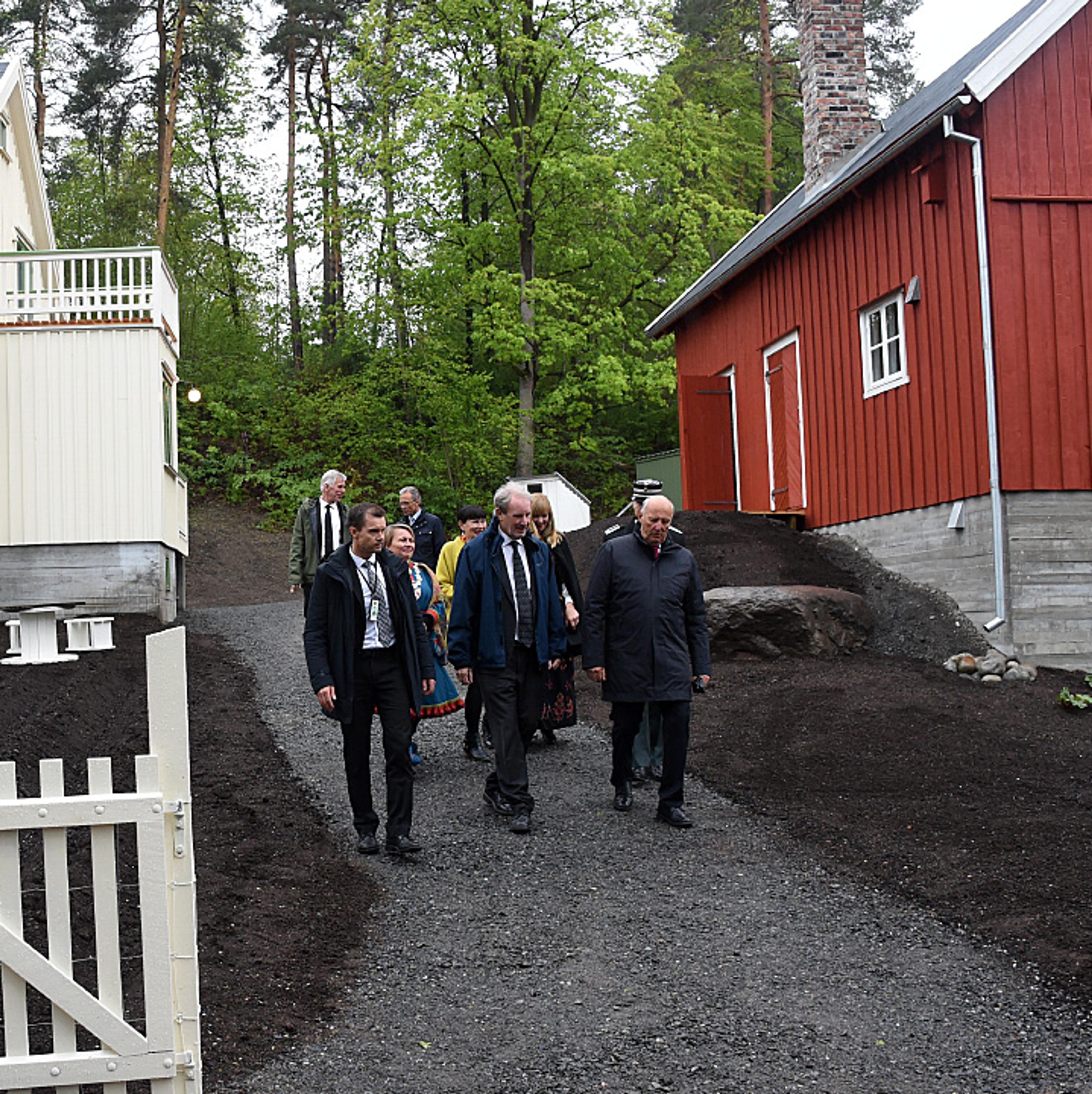 Hans Majestet Kongen markerte at «Finnmark» er flyttet til Norsk Folkemuseum i dag. Et bolighus med utedo og fjøs fra gjenoppbygningstiden er gjenreist på friluftsmuseet, som markerer 125 år i år.