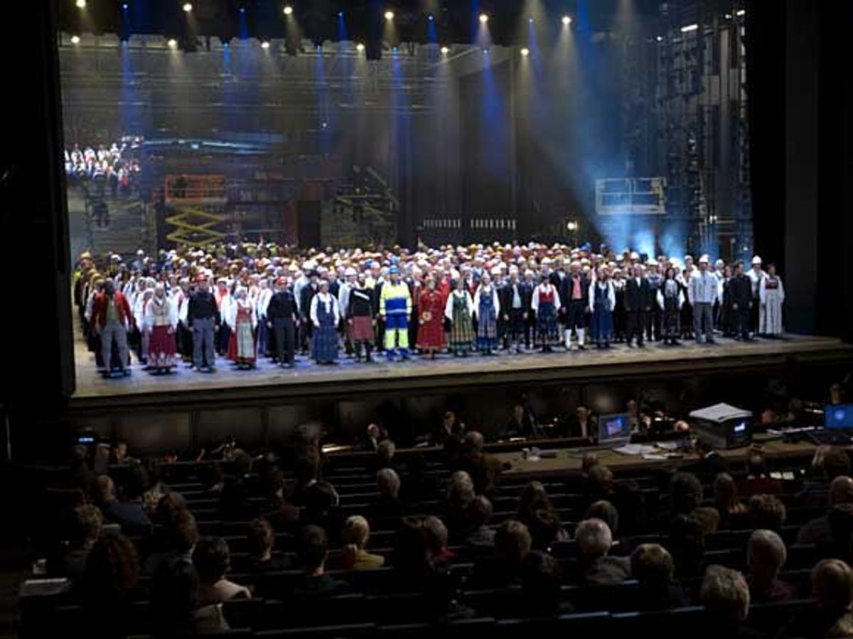 I tillegg til de profesjonelle utøverne, fikk vi en helt egen versjon av "Slavekoret". 450 representanter for landets kommuner og alle dem som har vært med og bygge operahuset, framførte "Slavekoret" fra Guiseppe Verdis opera Nebukanesar.