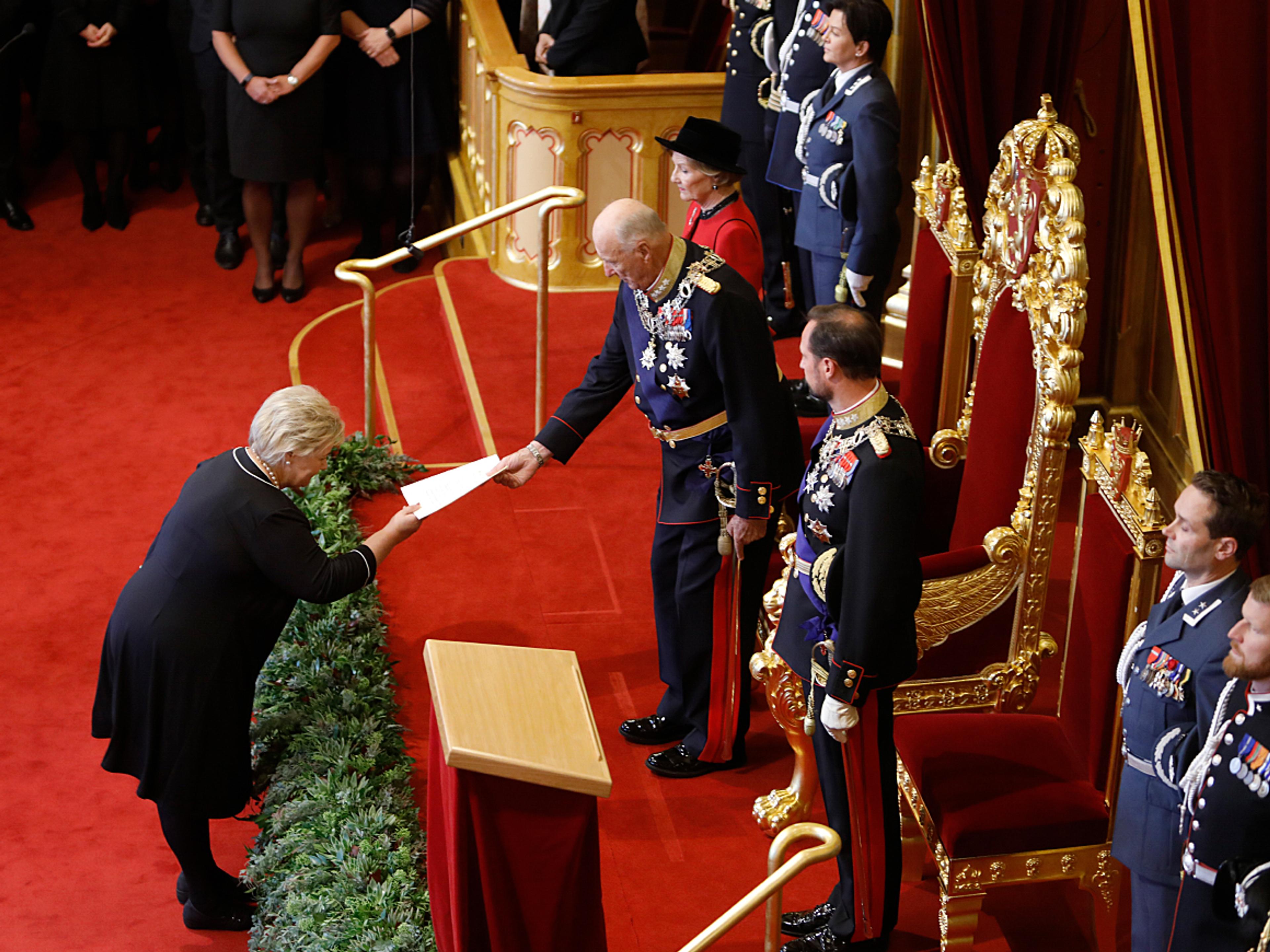 Statsminister Erna Solberg overrakte Kongen Trontalen. Den er forfattet av regjeringen, og skisserer planene for regjeringens politikk i den kommende sesjonen.