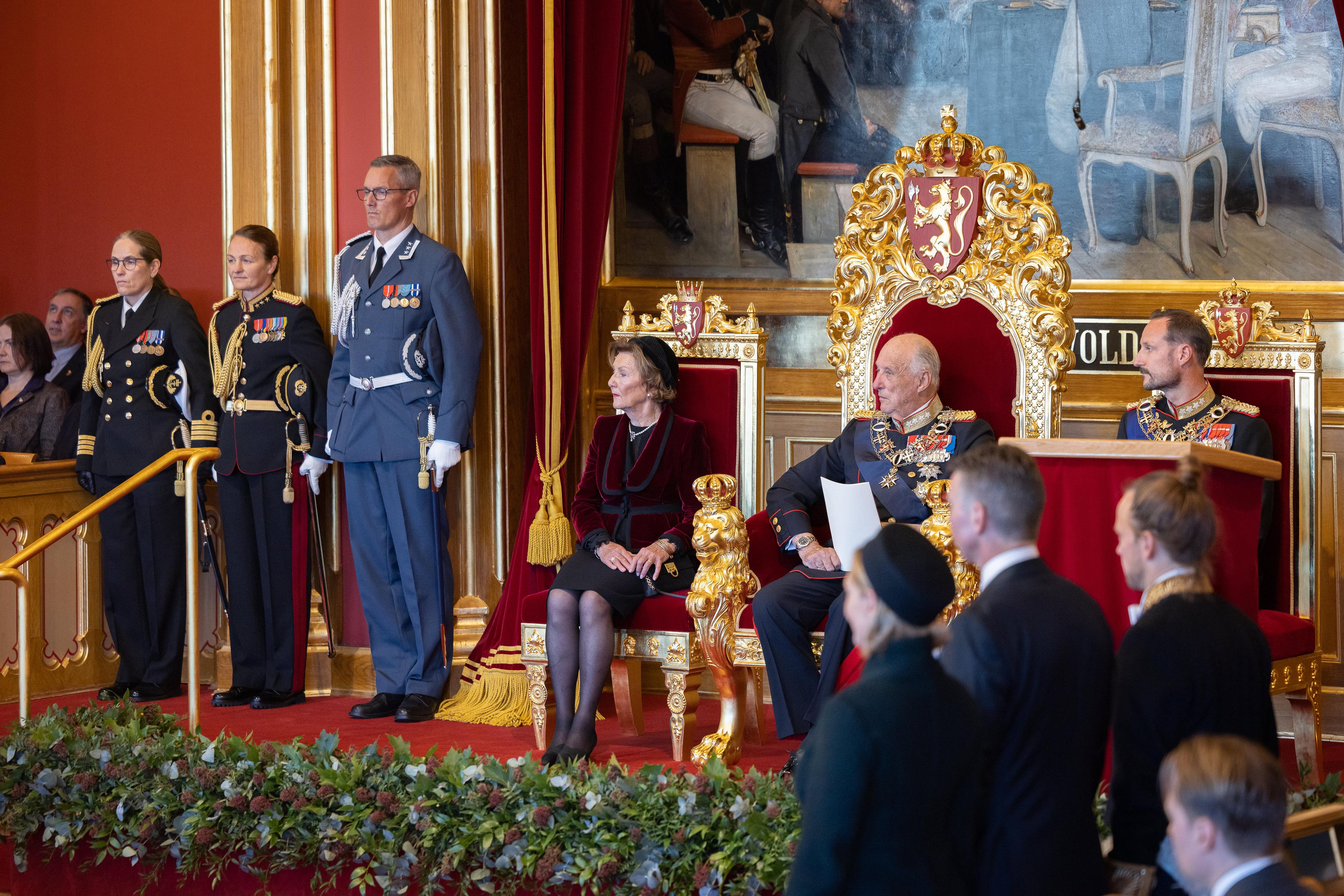 Hans Majestet Kongen foretok i ettermiddag den høytidelige åpningen av det 167. storting ved å lese Trontalen. Hennes Majestet Dronningen og Hans Kongelige Høyhet Kronprinsen var til stede under seremonien i Stortingssalen.