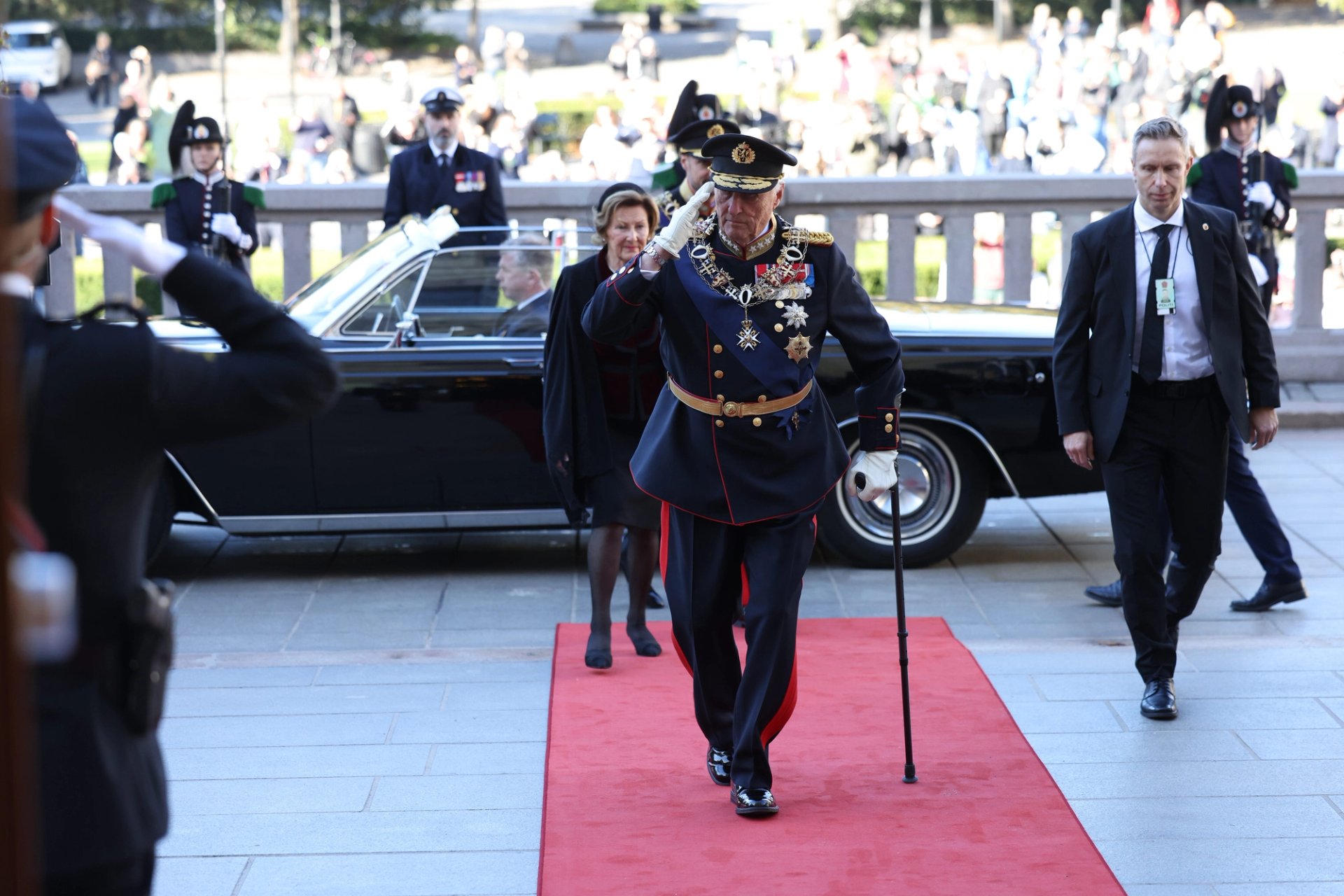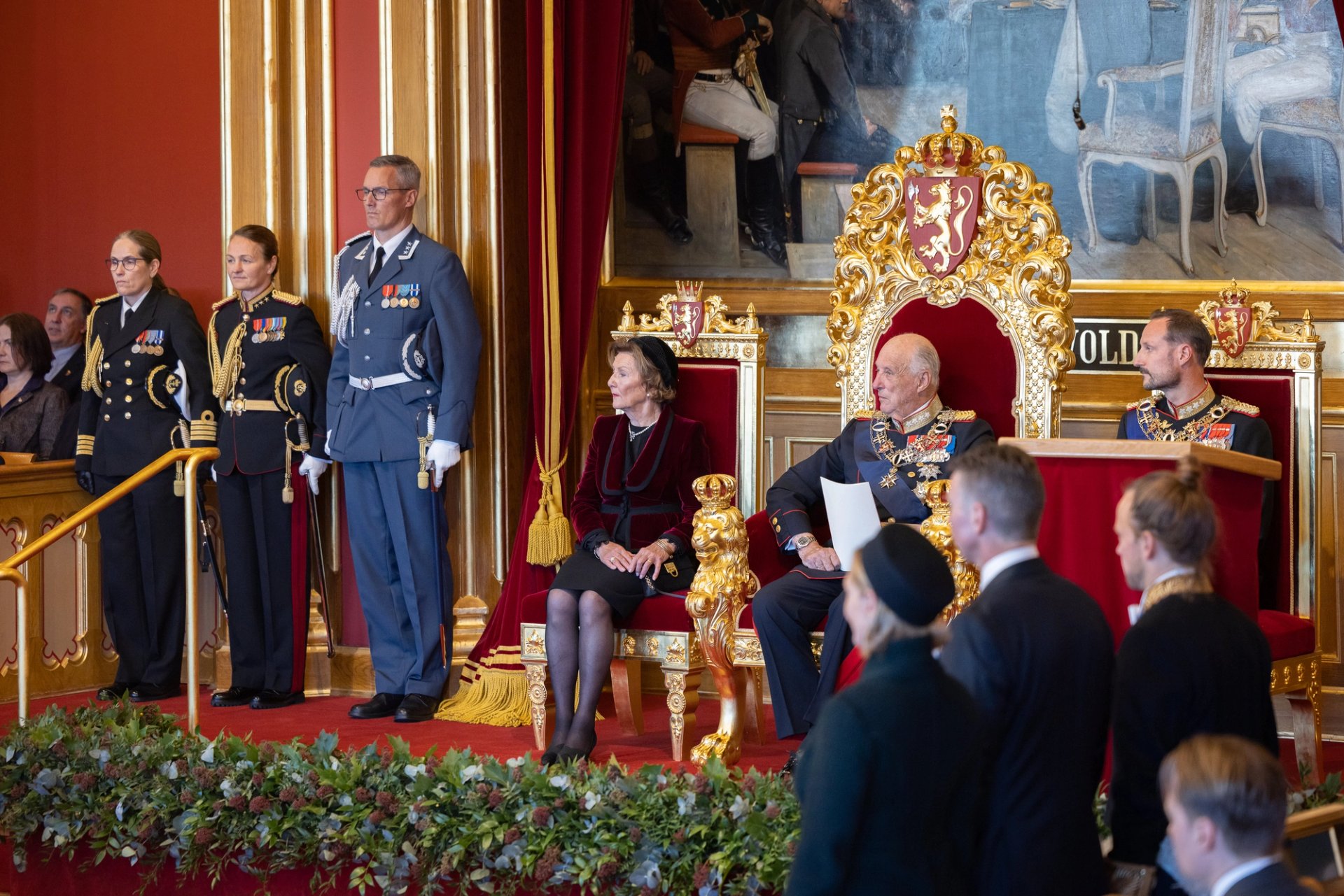 Åpningen av Stortinget finner sted i oktober hvert år, og innleder sesjonen 2022-2023 for folkets representanter. I vakkert høstvær ankom Kongeparet Stortinget i åpen bil fra Slottet, ned en flaggprydet Karl Johans gate til Stortinget. Paradeavdelinger fra samtlige forsvarsgrener dannet espalier langs ruten fra Slottet til Stortinget.