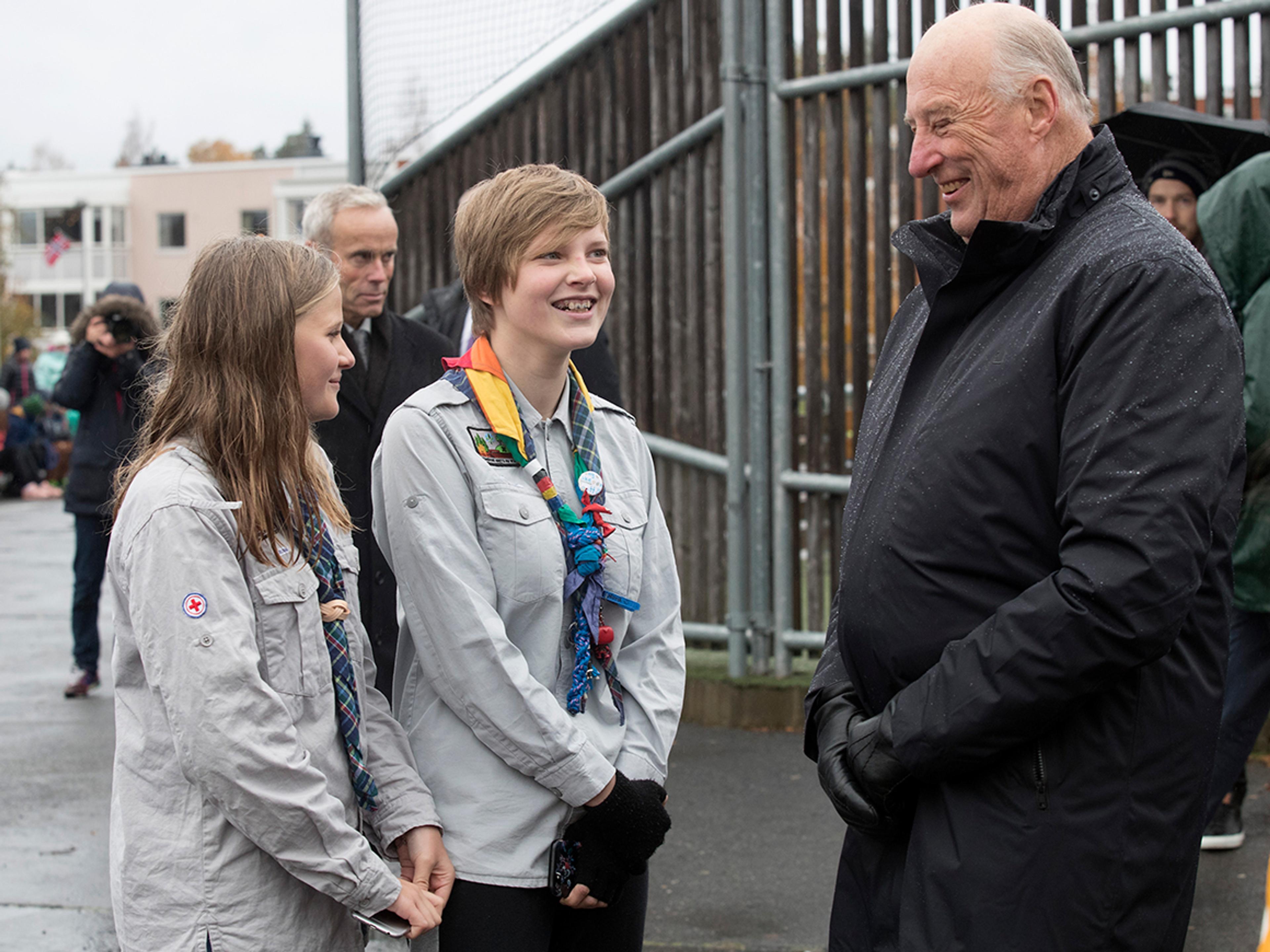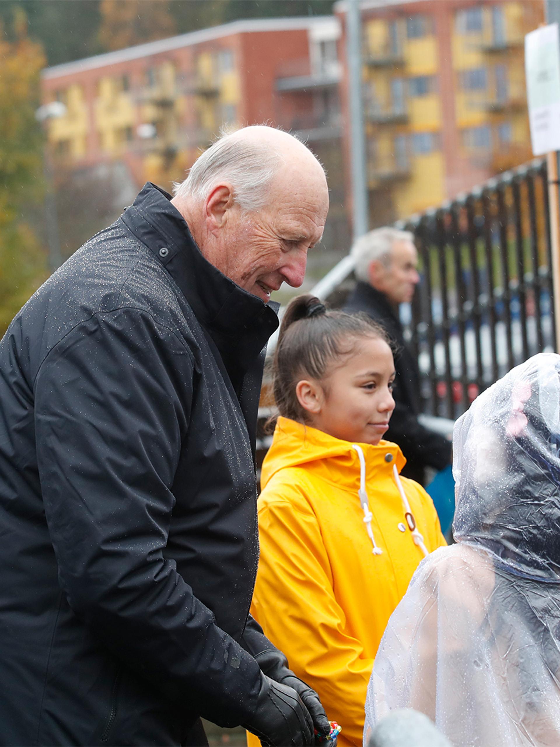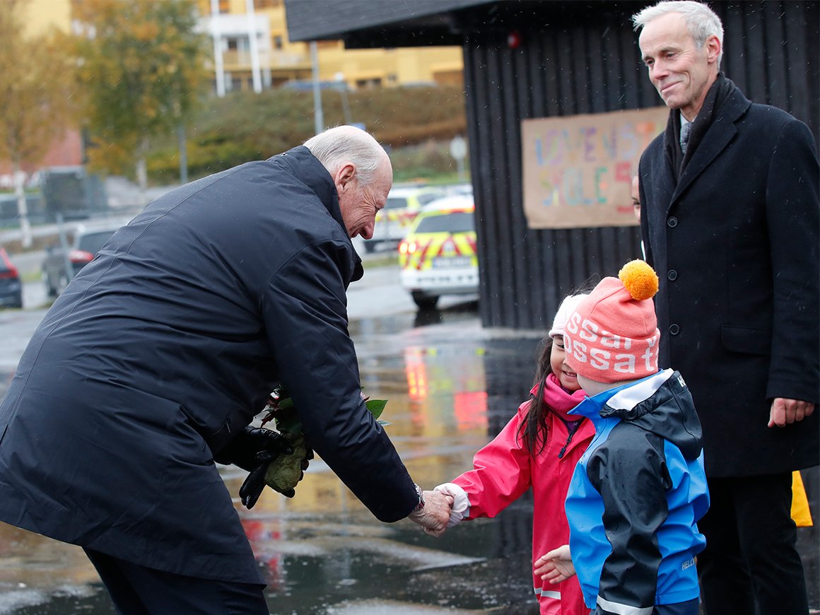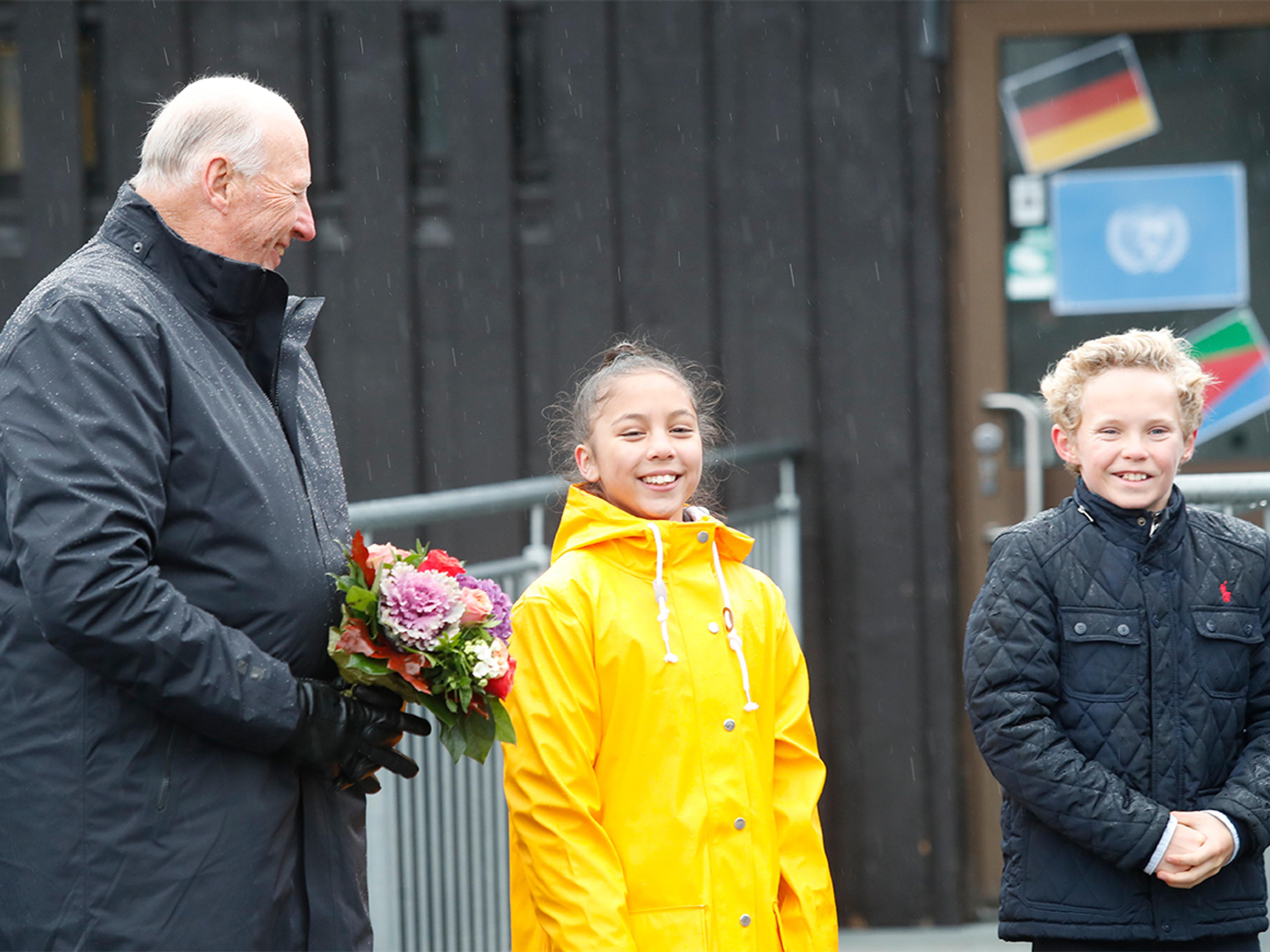 Hans Majestet Kong Harald besøkte kommunene Rælingen og Enebakk i Akershus i dag. Kong Harald ble møtt med fanfare fra Rælingen skolekorps da han ankom Løvenstad skole.