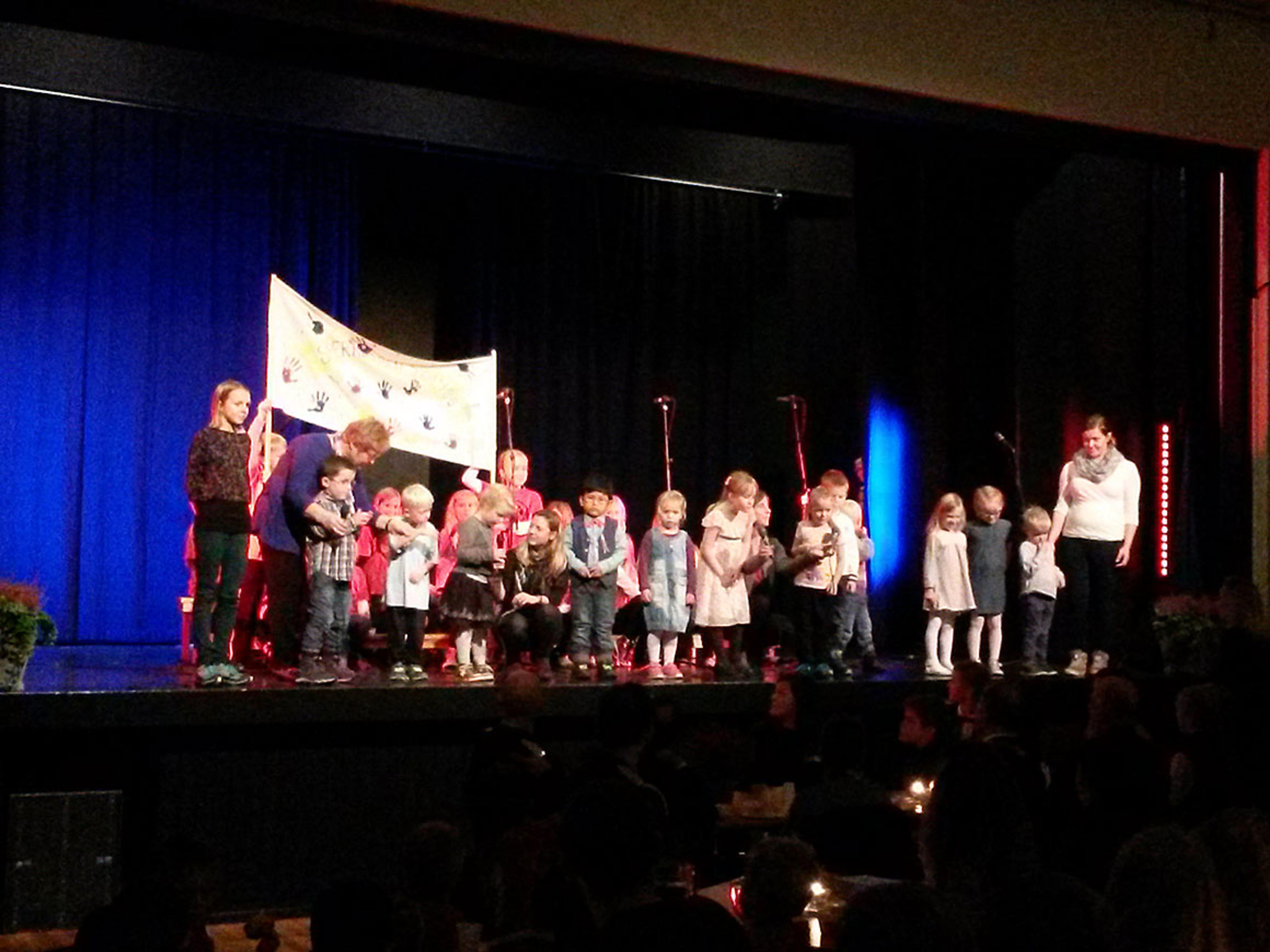 Første stopp på programmet var Støa barnehage, lengst nord i Svelvik kommune. Her var alle de eldste barnehagebarna i kommunen samlet.
