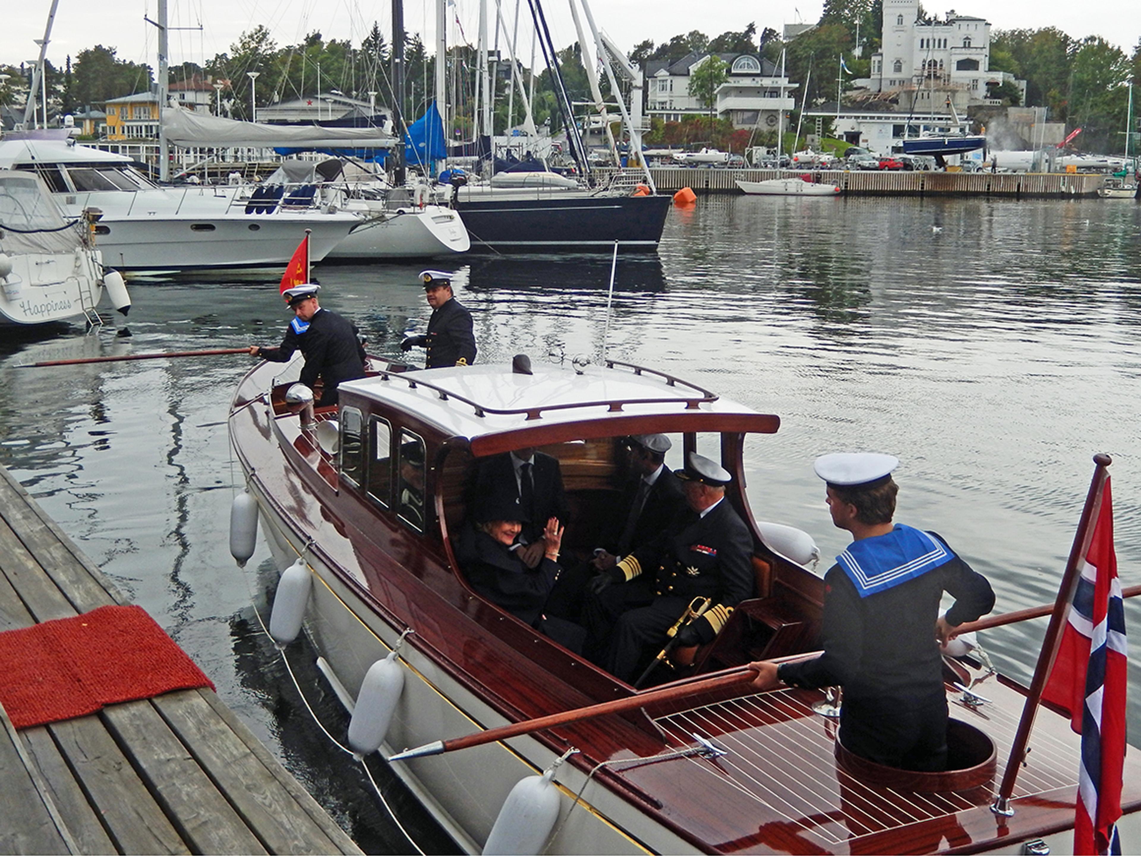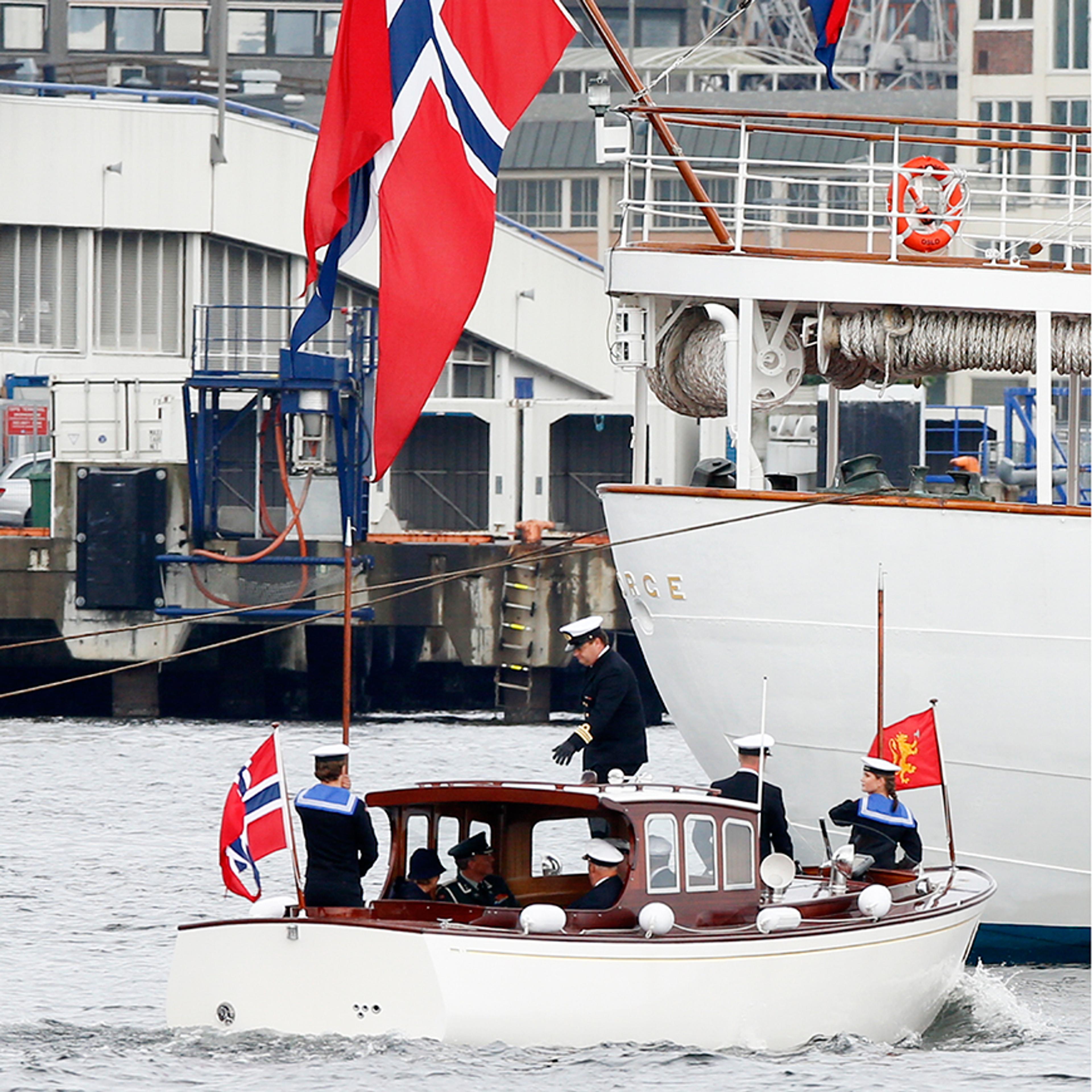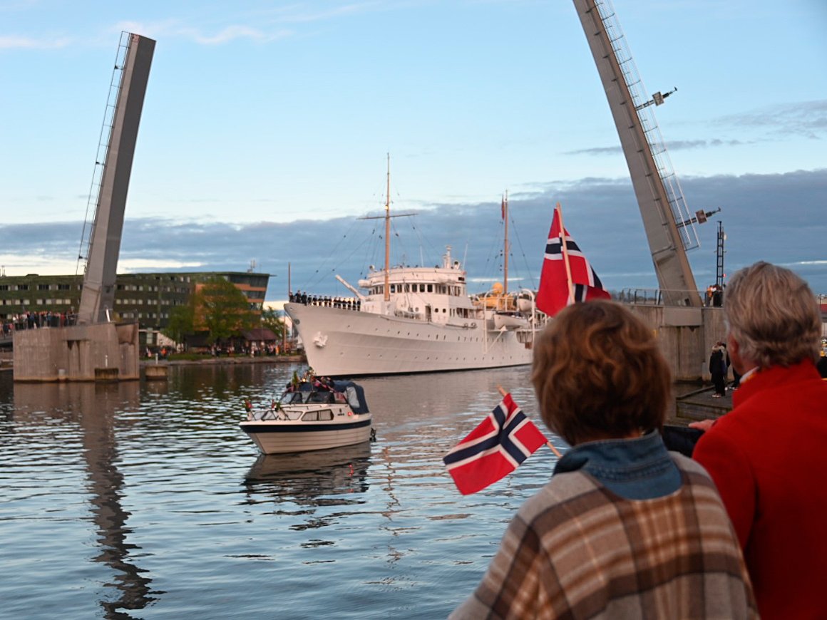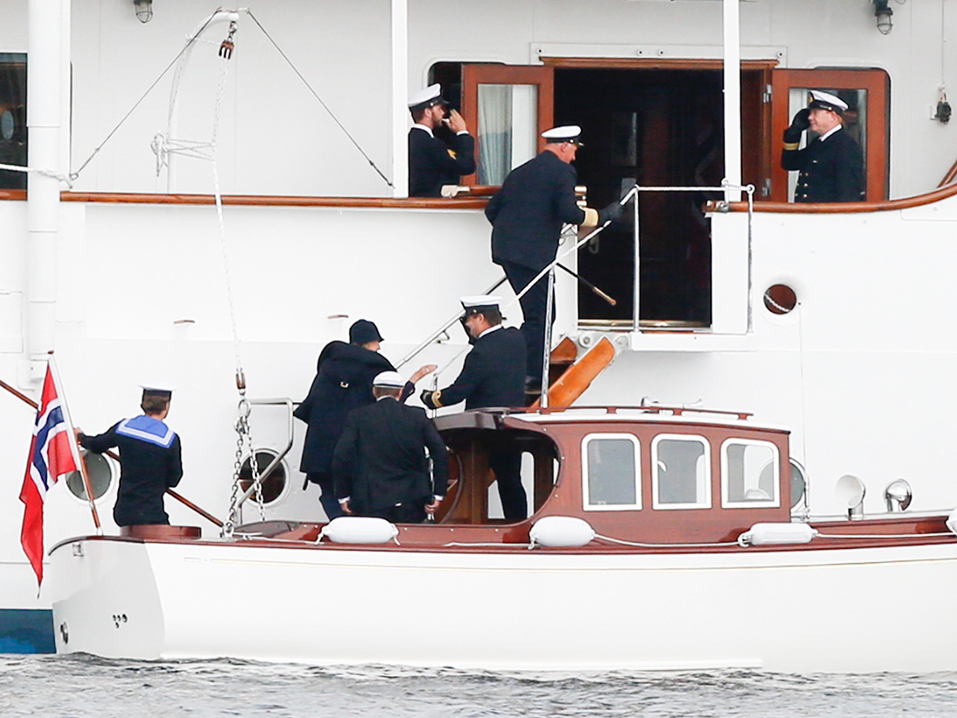 Hans Majestet Kongen debarkerte Kongeskipet "Norge" i går ettermiddag. Dette markerte avslutningen på en hektisk sesong for skipet. Hennes Majestet Dronningen var sammen med Kongen under seremonien om bord.
