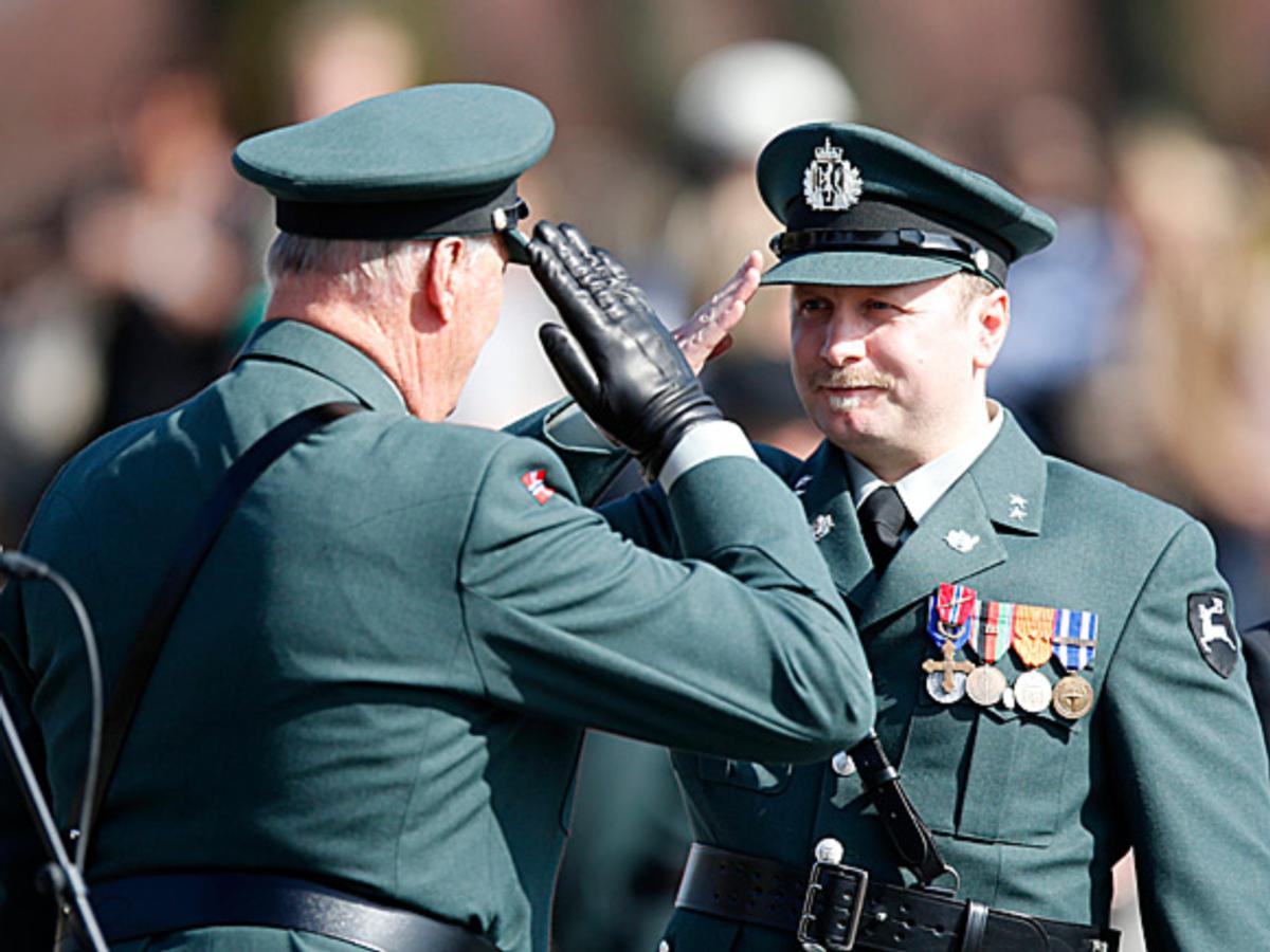 Hans Majestet Kongen delte ut Krigskorset med sverd til løytnant Lars Kristian Lauritzen og major Kristian Bergh Stang under markeringa av frigjeringsdagen og den nasjonale veterandagen på Akershus festning i dag.