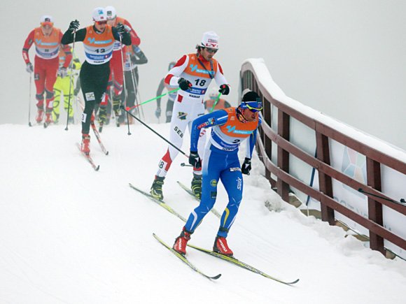 Petter Northug Jr vant herrenes skiathlon foran Didrik Tønseth og Martin Johnsrud Sund.