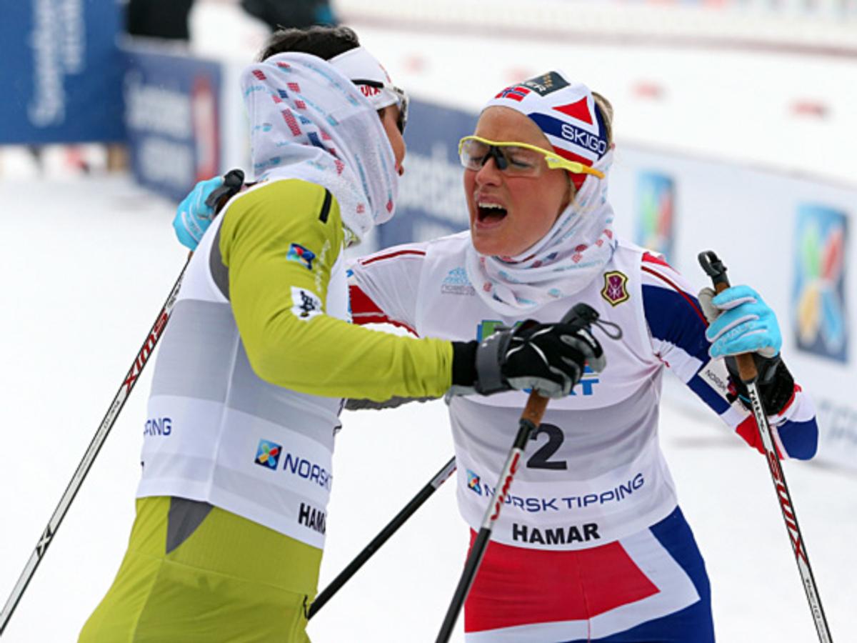 Damenes 15-kilometer var første øvelse, og Kong Harald fikk se Marit Bjørgen ta sitt 16. NM-gull etter et spurtoppgjør mot Therese Johaug. Med denne seieren tangerer Bjørgen rekorden til Oddvar Brå og Bente Skari.