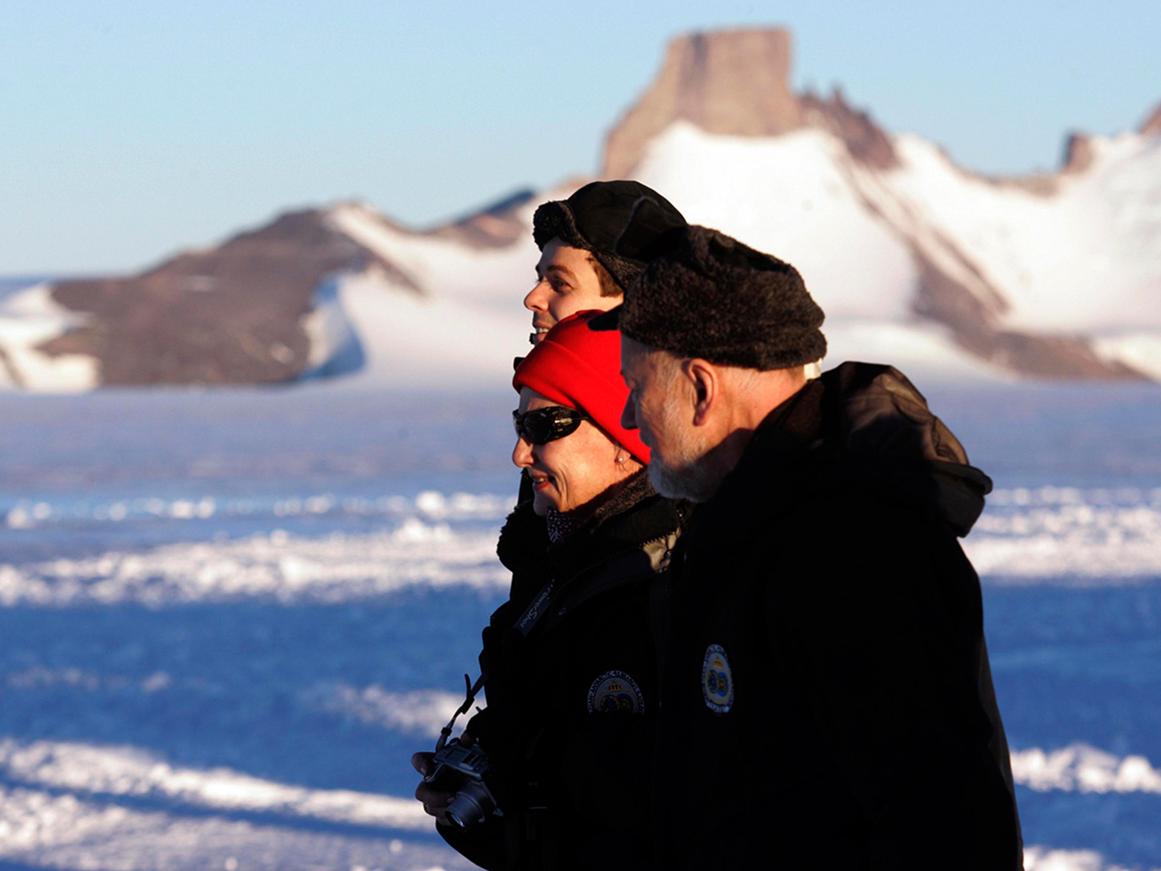 Så bar det ut på isen med beltevogn, til et utkikkspunkt vest for Troll.