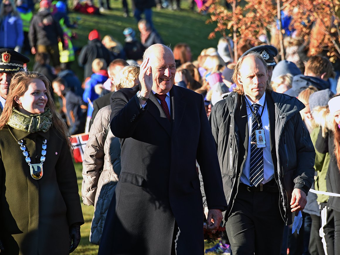 Kong Harald ble tatt i mot med kulturelt program i Malvik. Det ble historiske innblikk, revy, sang og dans. Det hele gikk for seg utendørs, så barnehager, skoler og seniordansen hadde gått sammen om nummer beregnet på å holde varmen i publikum.
