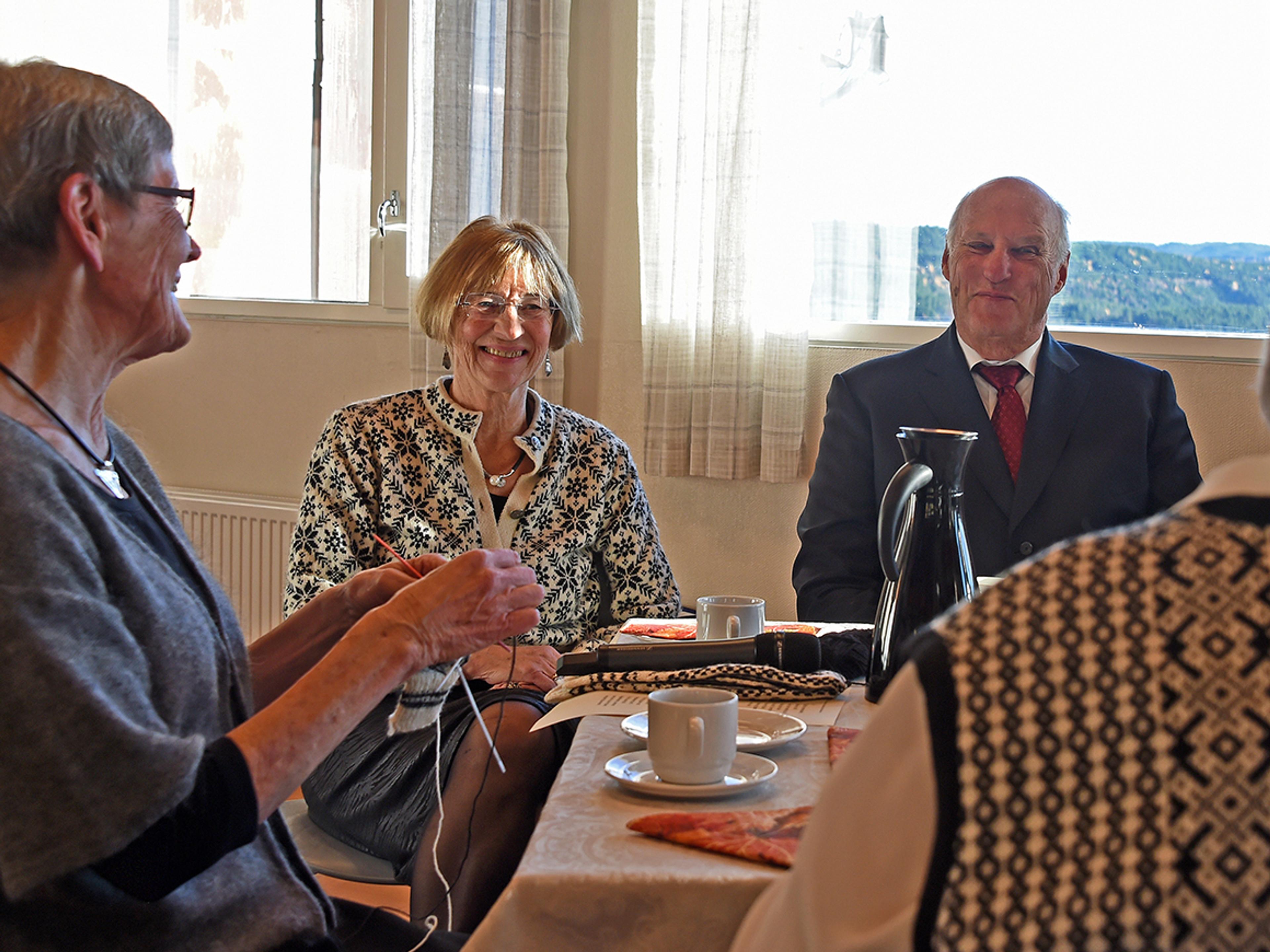 Selburosen pryder utallige votter og er kanskje det de fleste utenfor forbinder med Trøndelagskommunen. Så har da også rosen fått plass i kommunevåpenet. Rundt et bord med kaffe og "kakakaku" fikk Kongen en prat med fire strikkedamer, og Kong Harald fikk votter med seg hjem: Både kjærestevotter med plass til to, preget med Kongen og Dronningens fellesmonogram, og vanlige votter i vakkert selbumønster til alle barnebarna.
