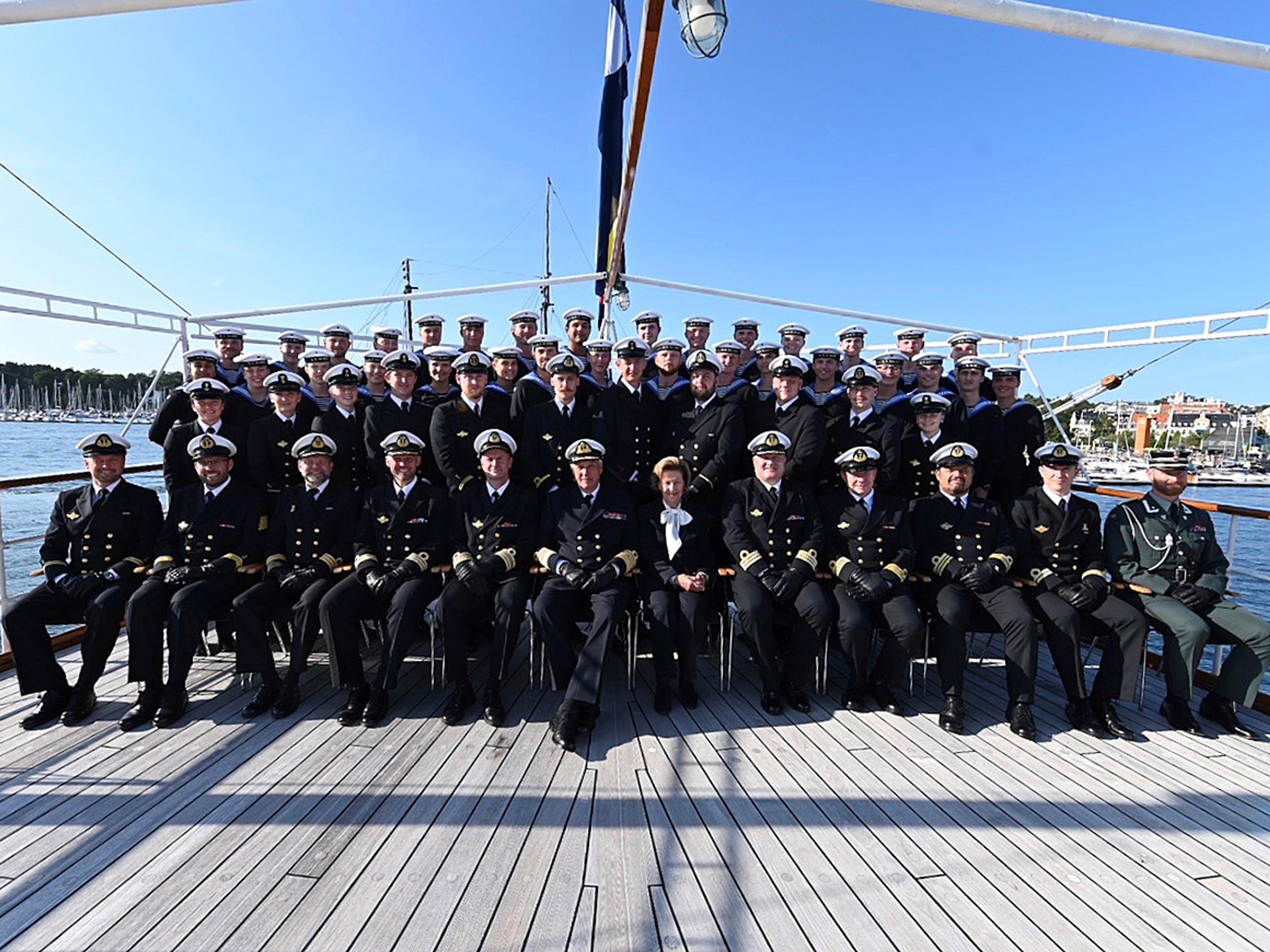 Kong Harald benyttet anledningen til å takke skipets mannskap for en fin og opplevelsesrik sesong. Hennes Majestet Dronningen var også til stede under debarkeringen.