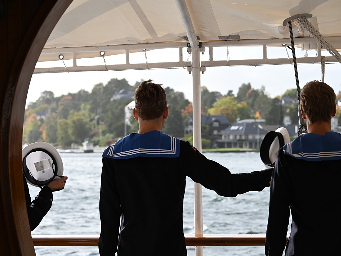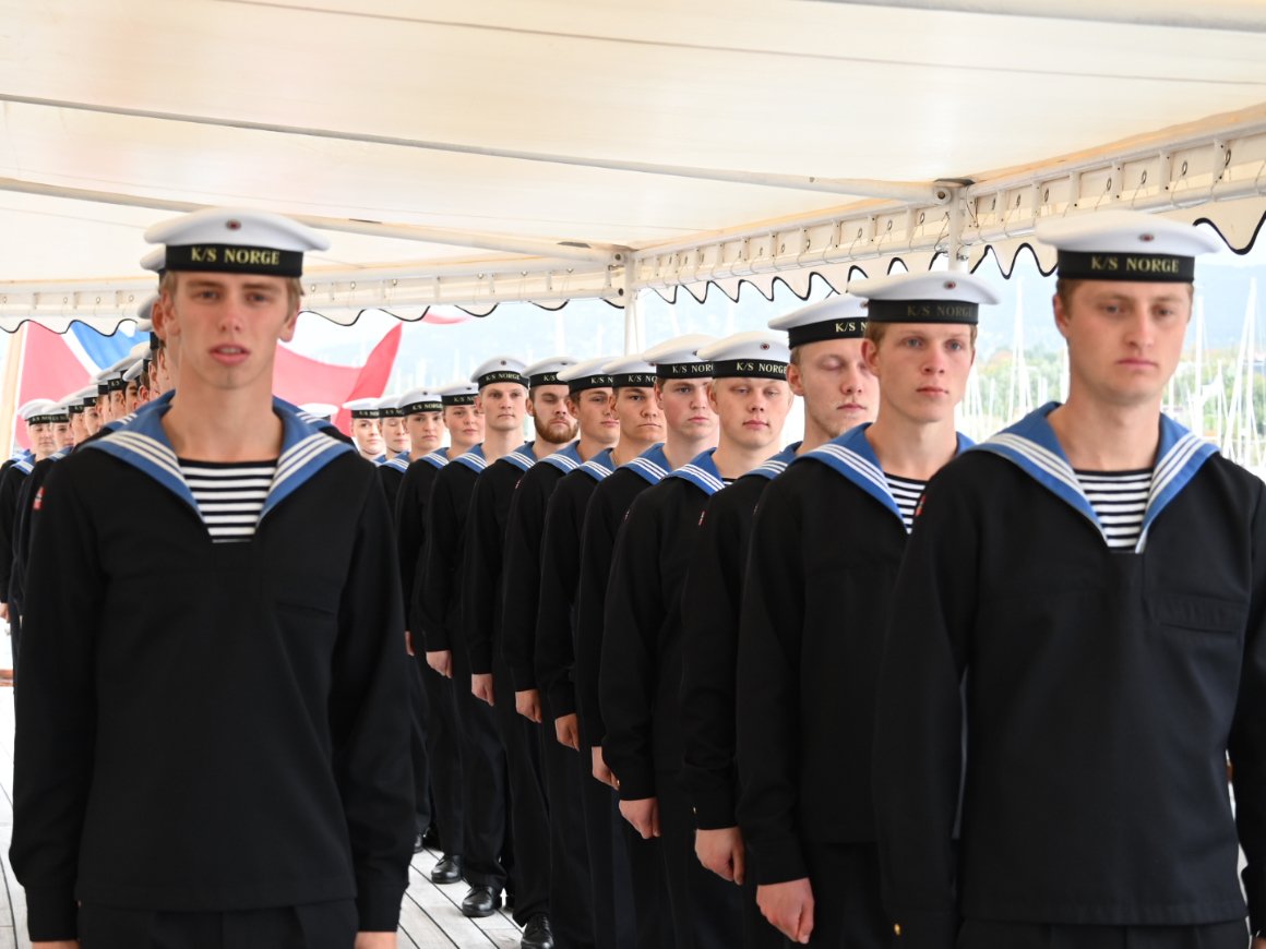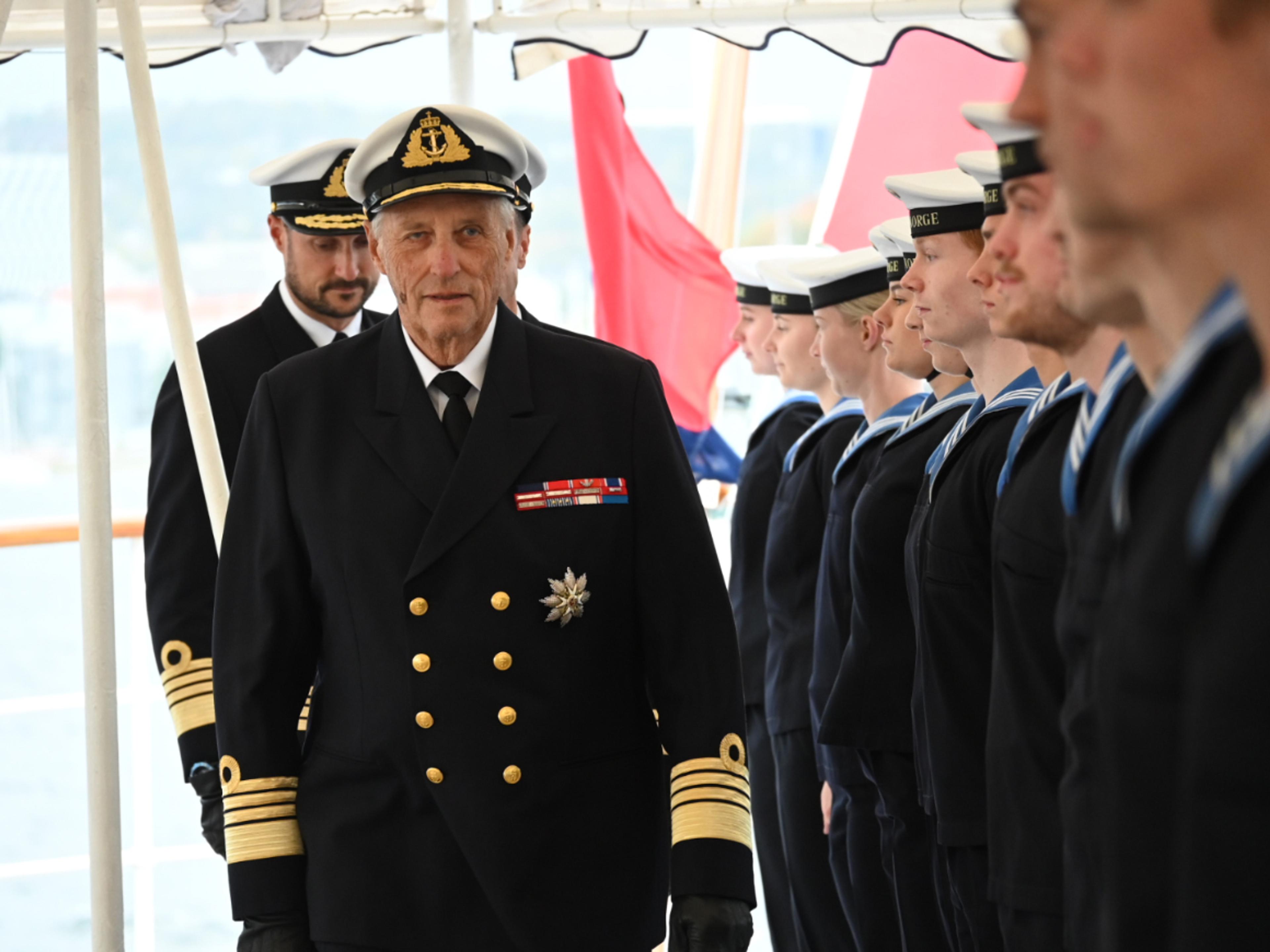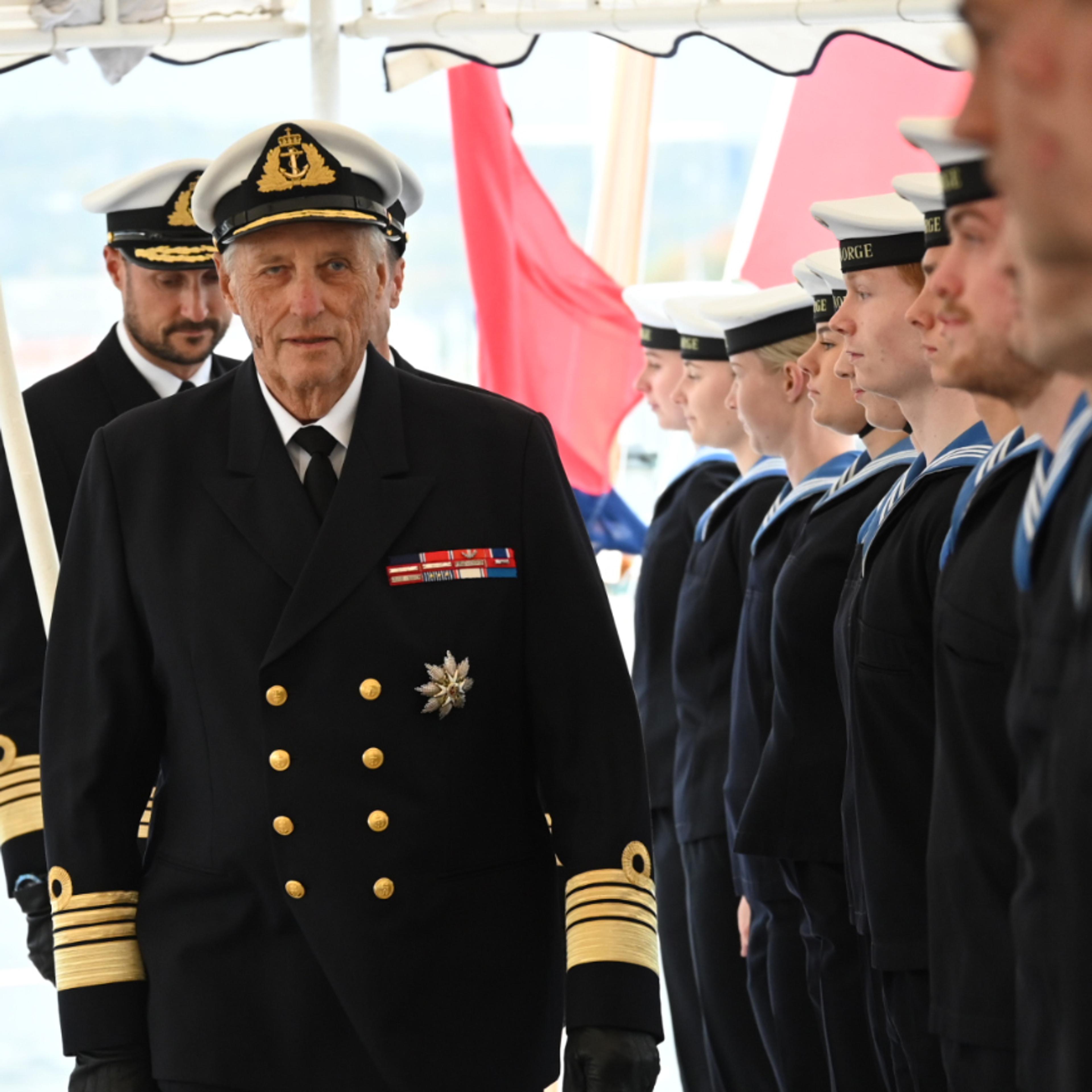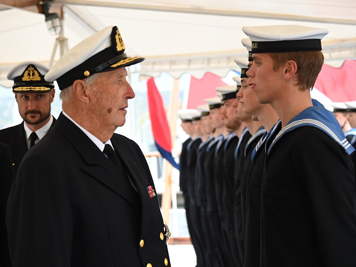 En siste inspeksjon av Kongeskipet inngår som del av programmet under debarkeringen. Kong Harald var ledsaget av Hennes Majestet Dronningen og Kronprinsen da han markerte avslutningen av årets sesong. Kongen benyttet anledningen til å takke mannskapet for en fin sesong om bord under den avsluttende oppstillingen.