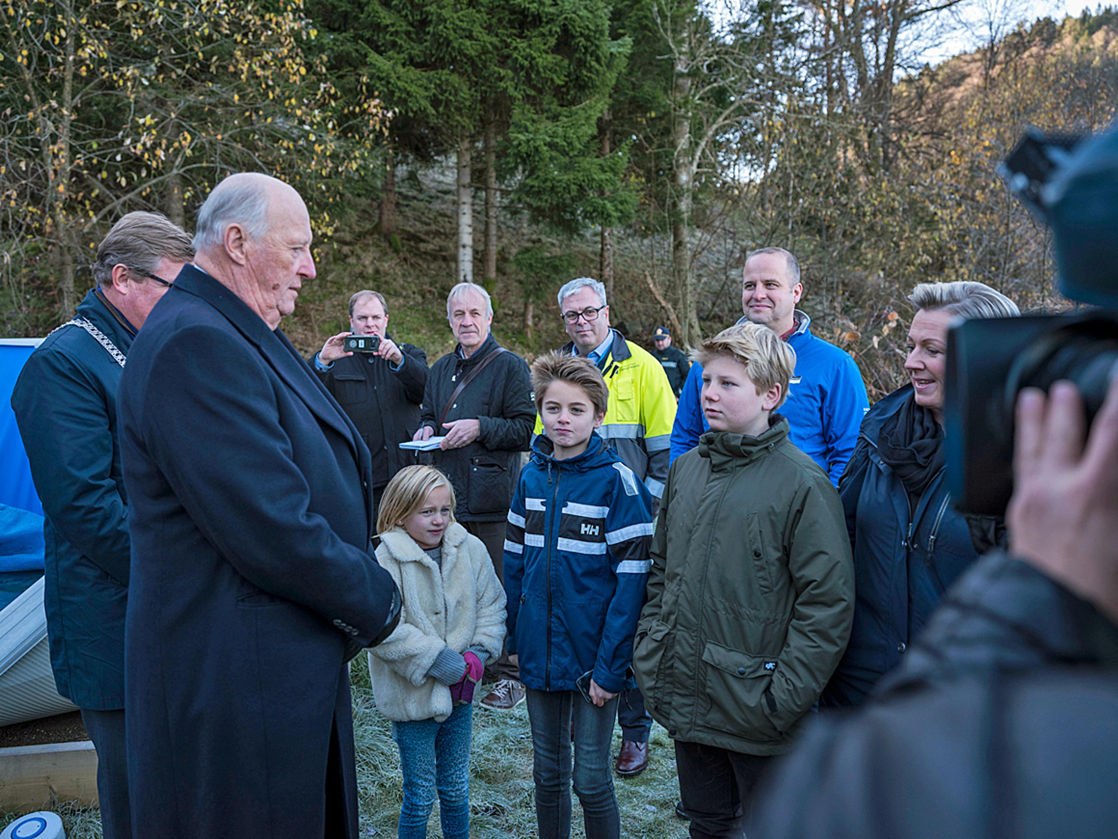 Hans Majestet Kong Harald møtte i dag ei rekkje av dei som vart ramma av dei to store flaumane på Sørlandet i oktober. Store område vart sette under vatn da kraftige regnvêr ramma landsdelen.