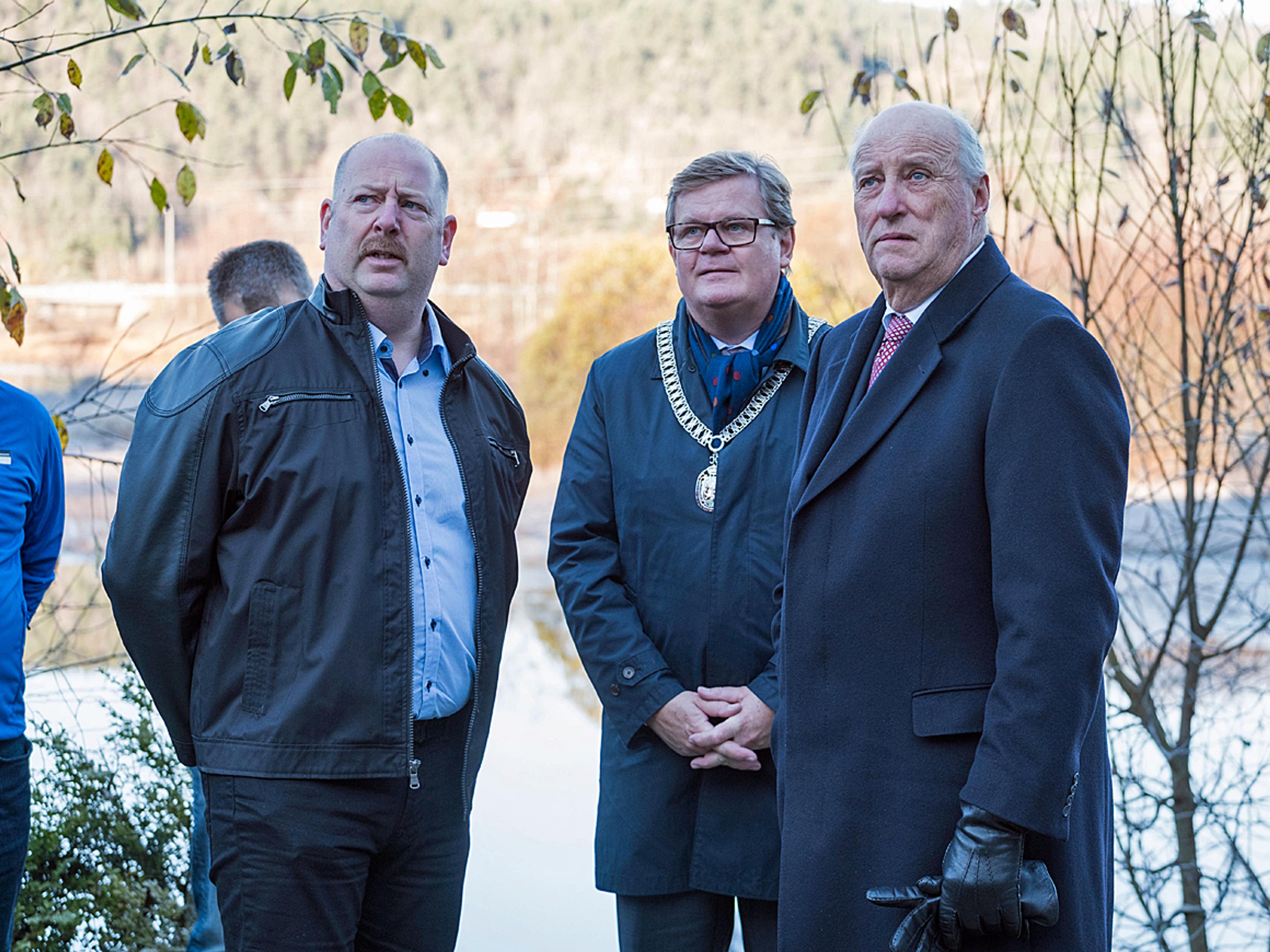 Kongen hadde uttrykt ønske om å få vite meir om korleis myndigheitene og innsatspersonellet i Tvedestrand handterte den ekstreme situasjonen med ein delt by.