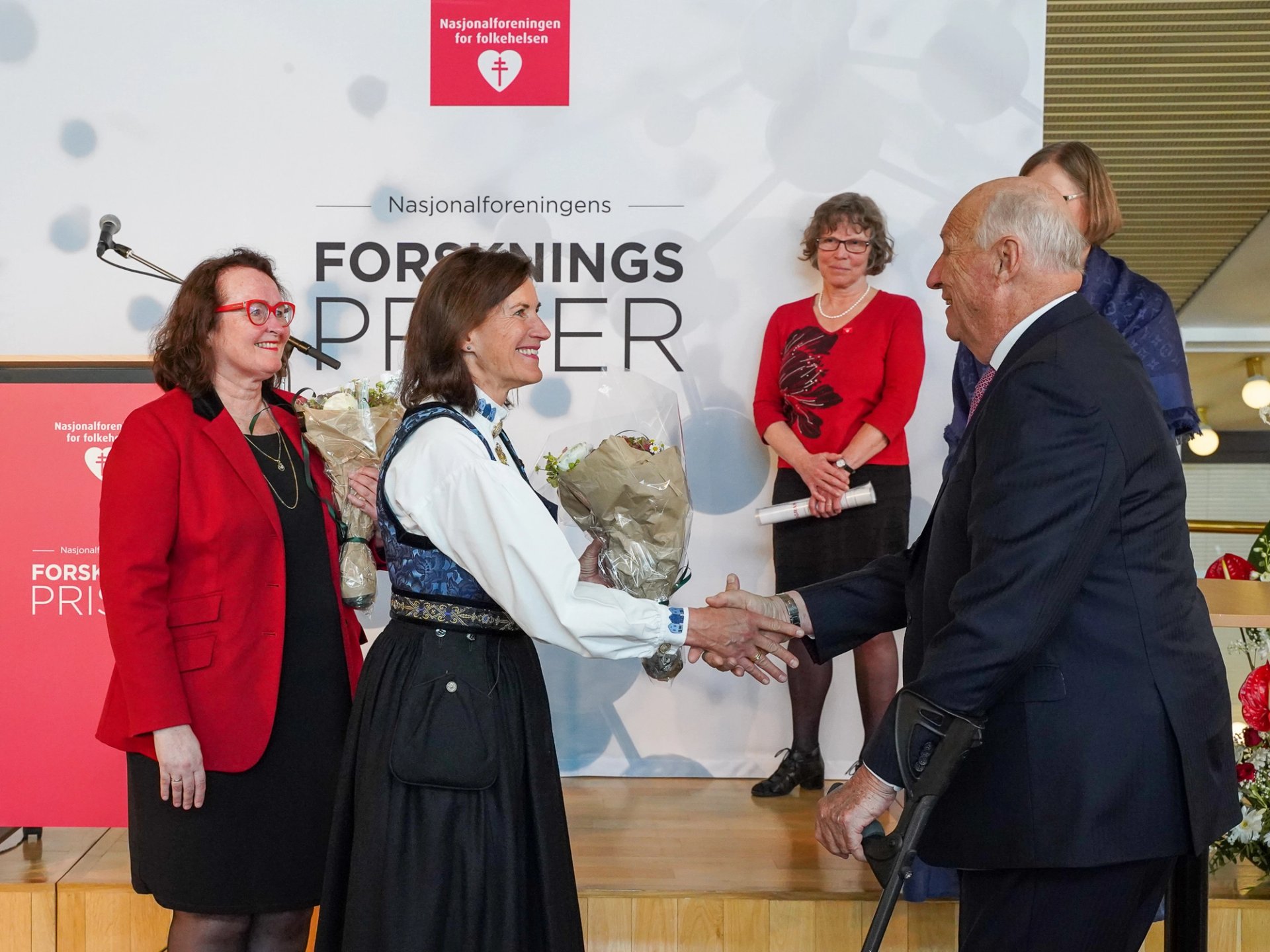 Forskningsprisene består av et beløp på 200 000 kroner og et eget kunstverk. Kong Harald gratulerte prismottakerne og overrakte blomster som et synlig tegn på at Nasjonalforeningens forskningspriser er tildelt de to forskerne ved Universitetet i Bergen.