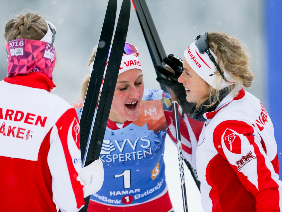 Og jammen var det Varden Meråker som seiret på damesiden også. Kathrine Harsem, Astrid Stav og Marthe Kristoffersen sikret klubbens andre stafettgull i dag.