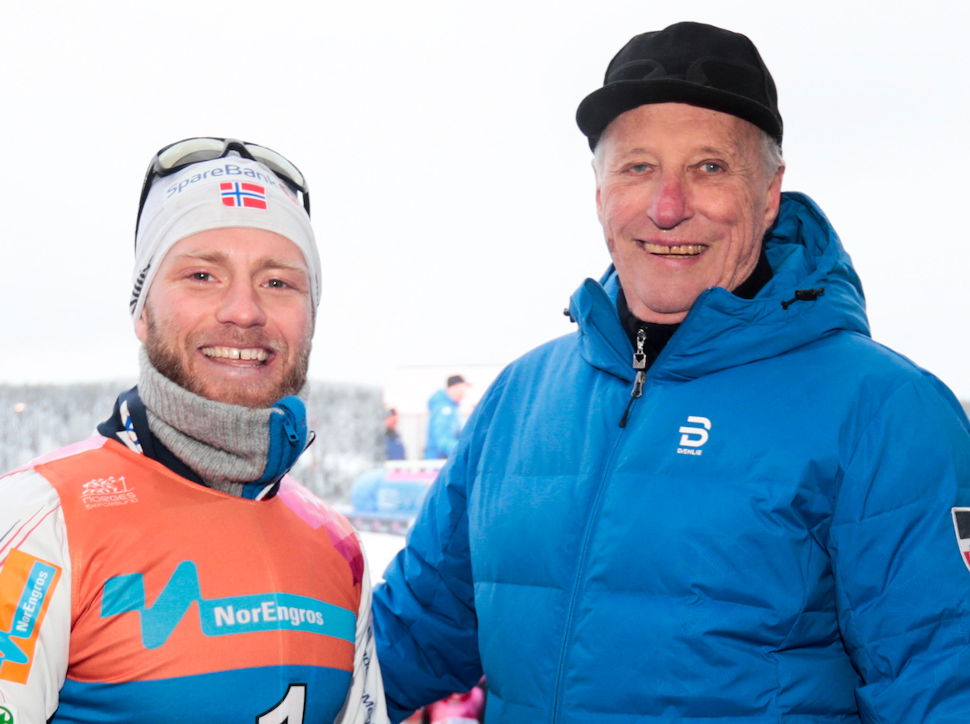 NM på ski har gått av stabelen på Gåsbu i Hedmark. Hans Majestet Kong Harald har fulgt løperne fra tribunen i helgen, og i dag kunne han konstatere dobbel stafettseier til Varden Meråker.
