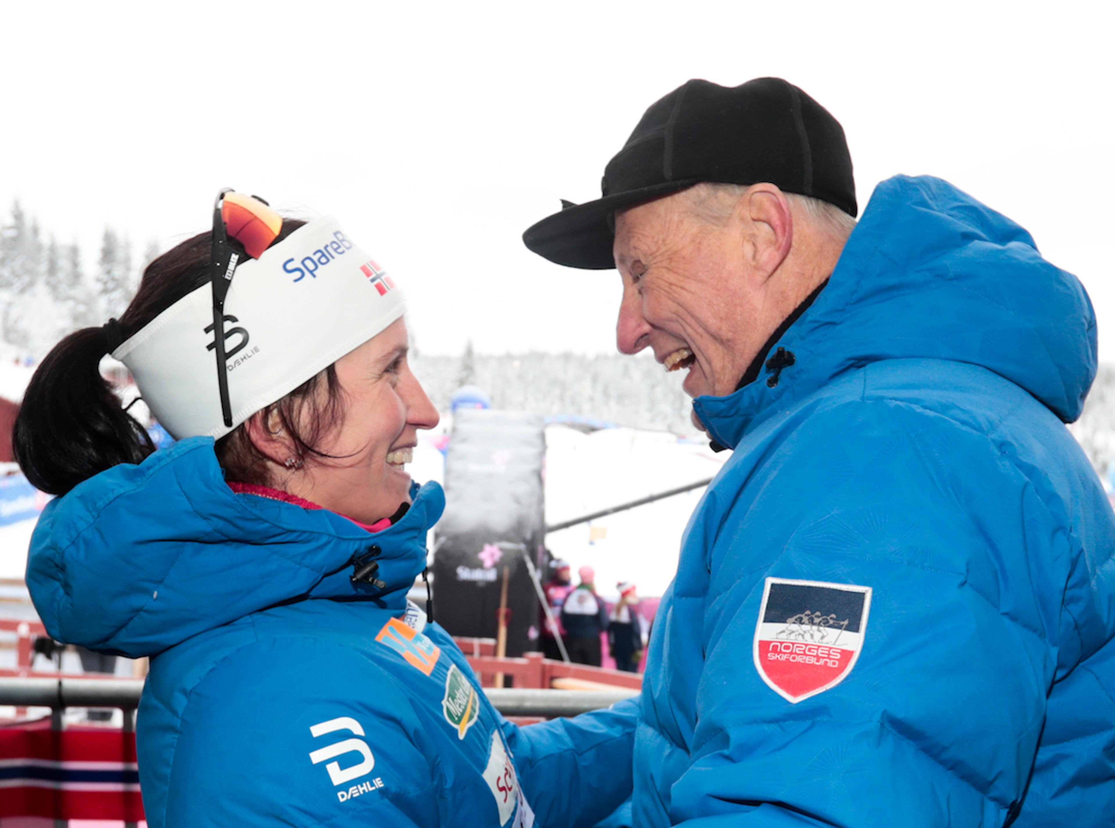 Kongen overvar to øvelser lørdag, og det var Marit Bjørgen som kunne ta turen opp på Kongetribunen etter seier på 15 kilometer skiathlon. Etter 7,5 kilometer klassisk etterfulgt av 7,5 i fristil, vant Bjørgen foran Astrid Uhrenholdt Jacobsen og Ragnhild Haga.