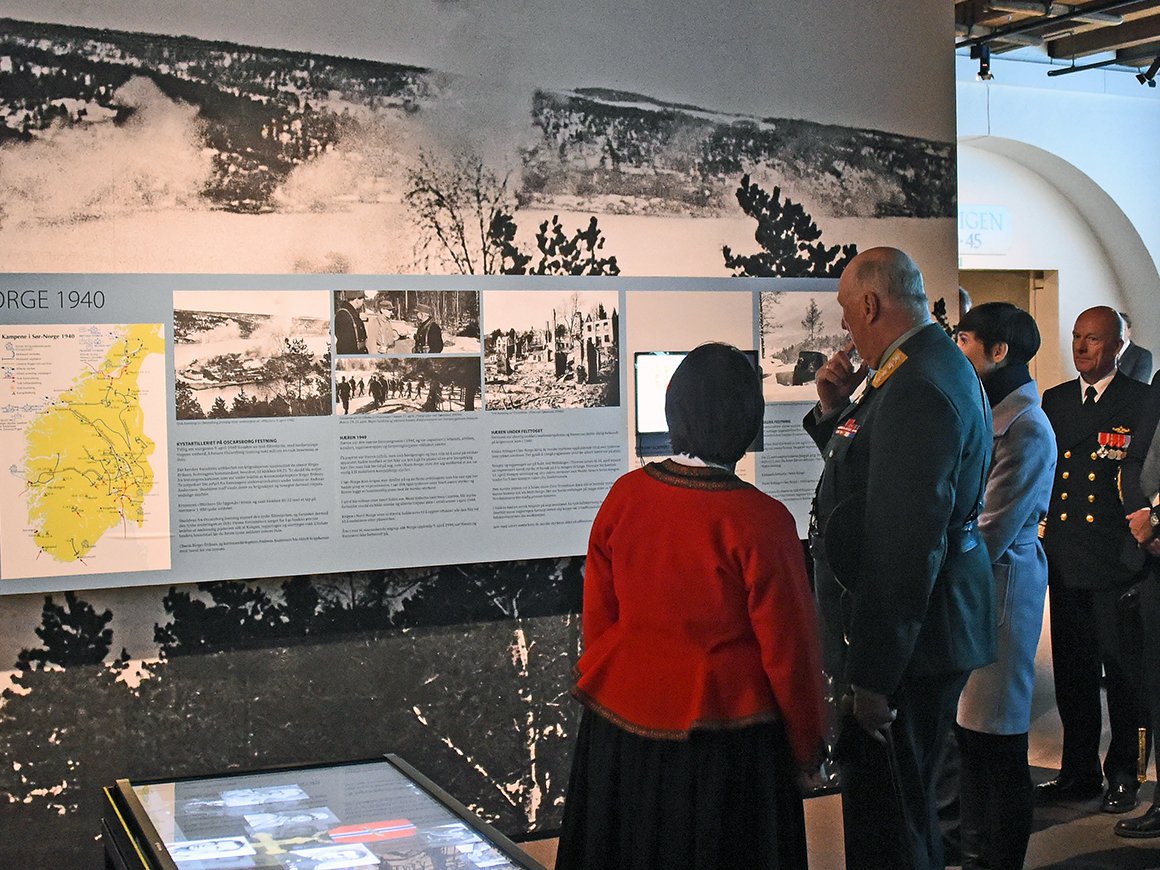 Etter åpningen vil Kongen få en omvisning i utstillingen, blant annet i følge med forsvarsminister Ine Eriksen Søreide og kurator Ågot Gammersvik.