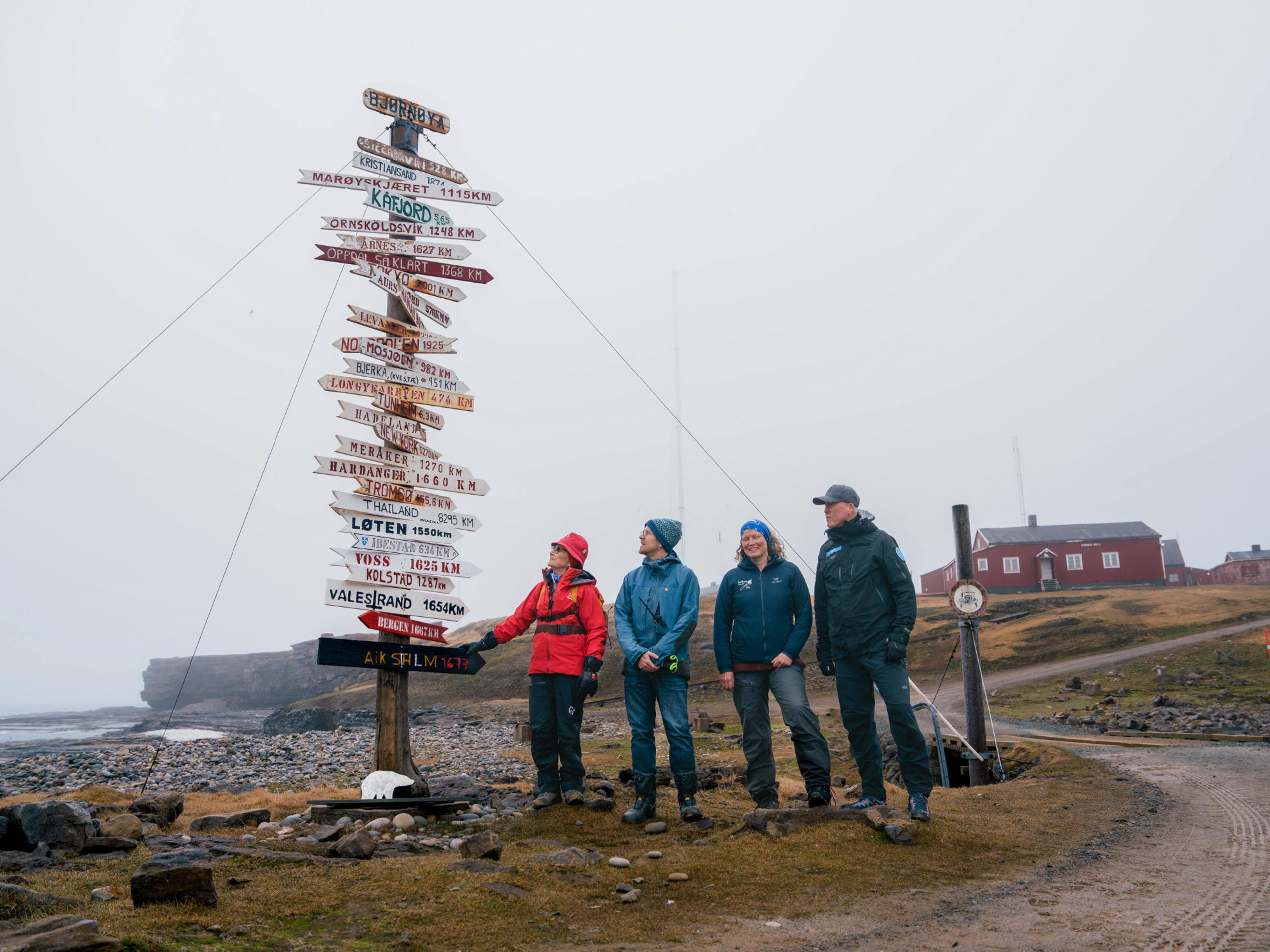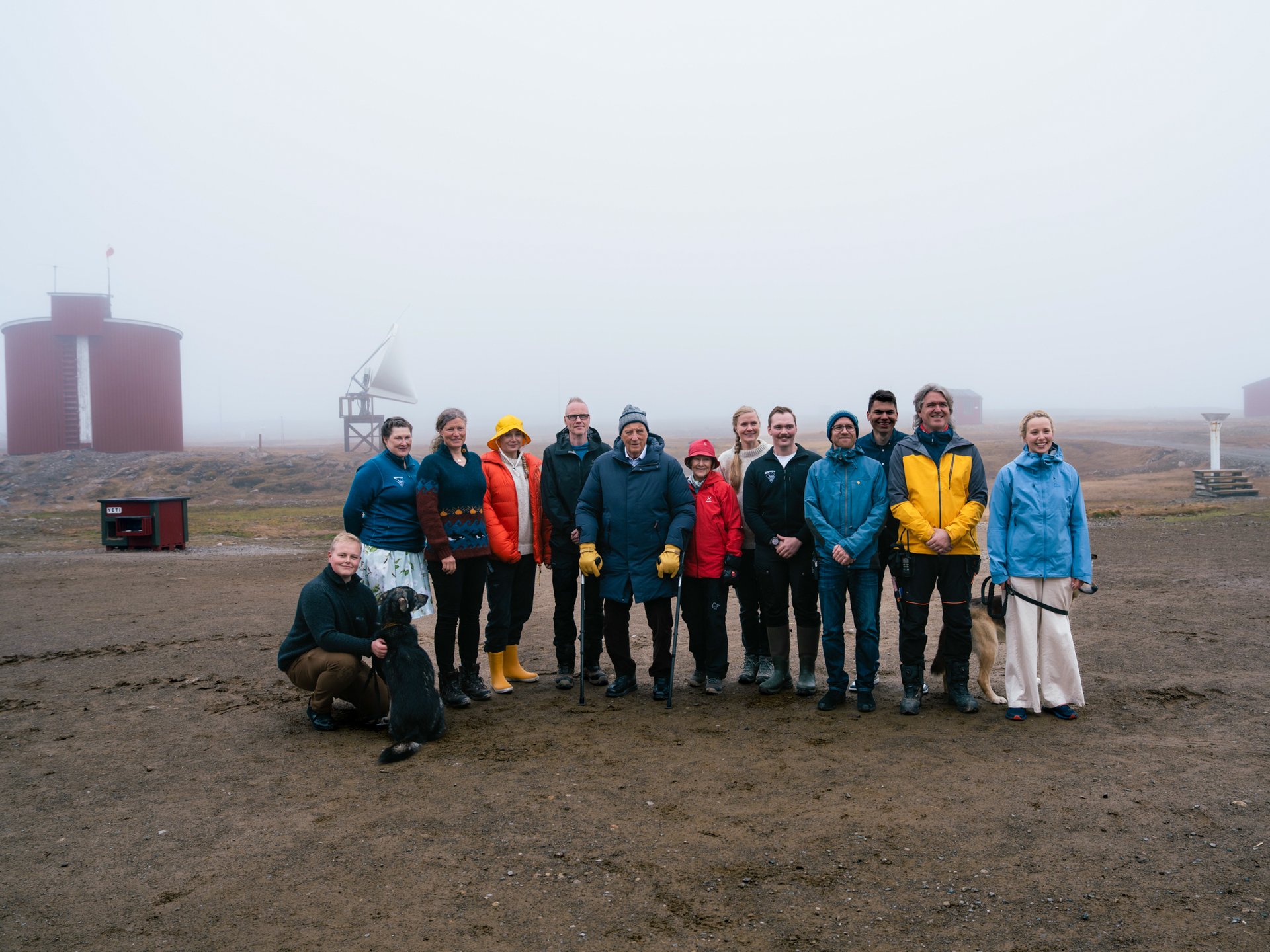 På Bjørnøya møtte Kongeparet den nye besetningen på den meteorologiske stasjonen her.