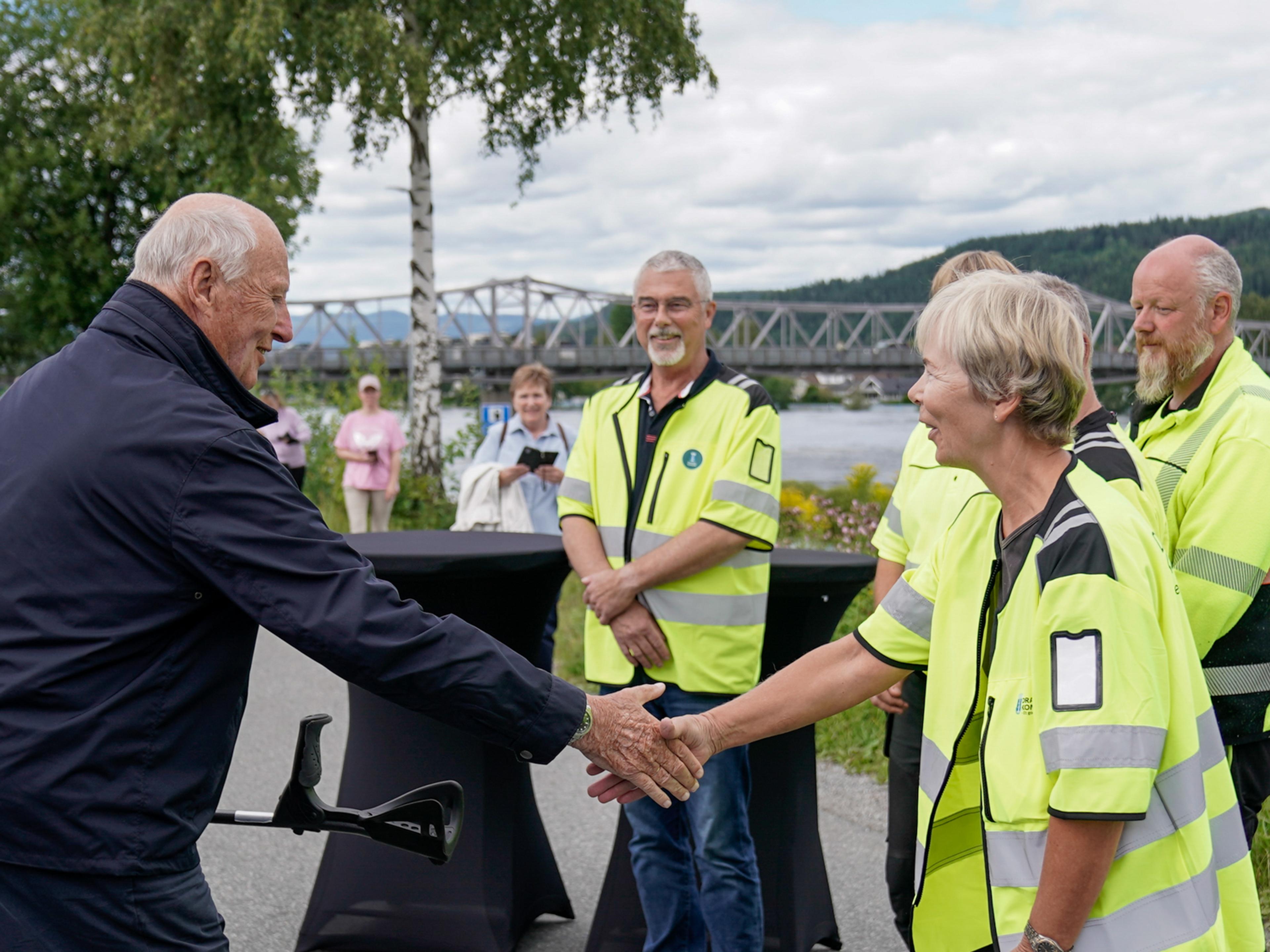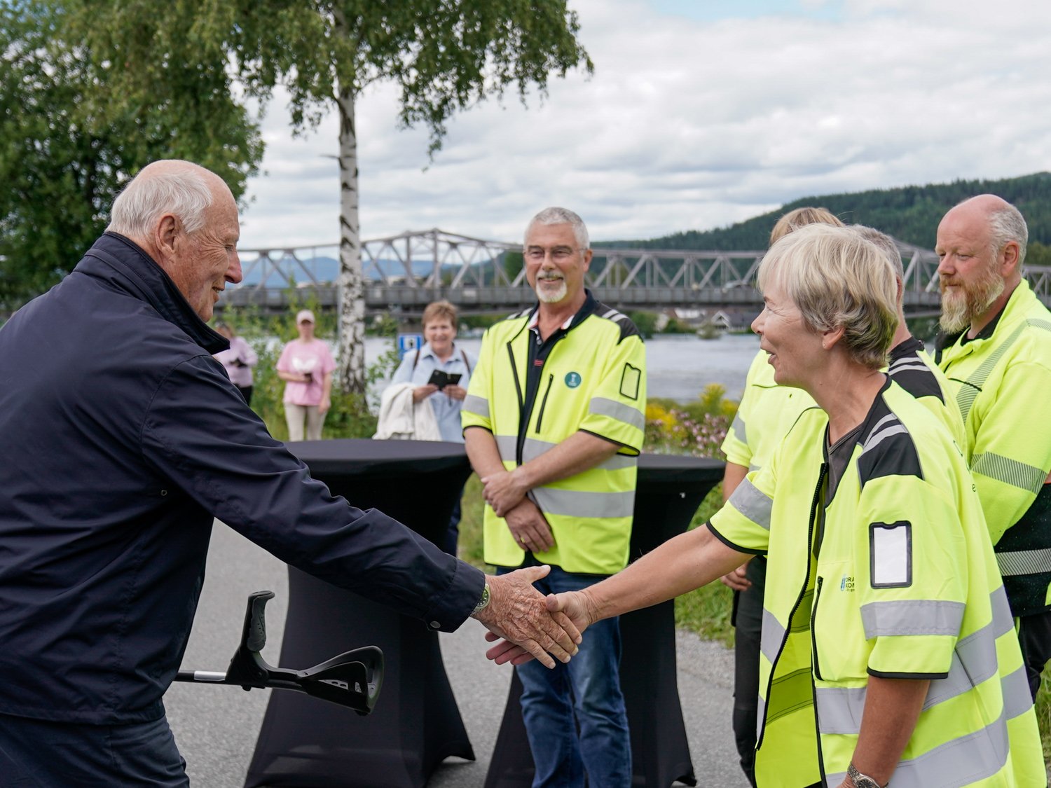 Hans Majestet Kongen og Hennes Majestet Dronningen besøkte Mjøndalen for å møte noen av de som har jobbet med å håndtere flommen og konsekvensene av ekstremværet «Hans».