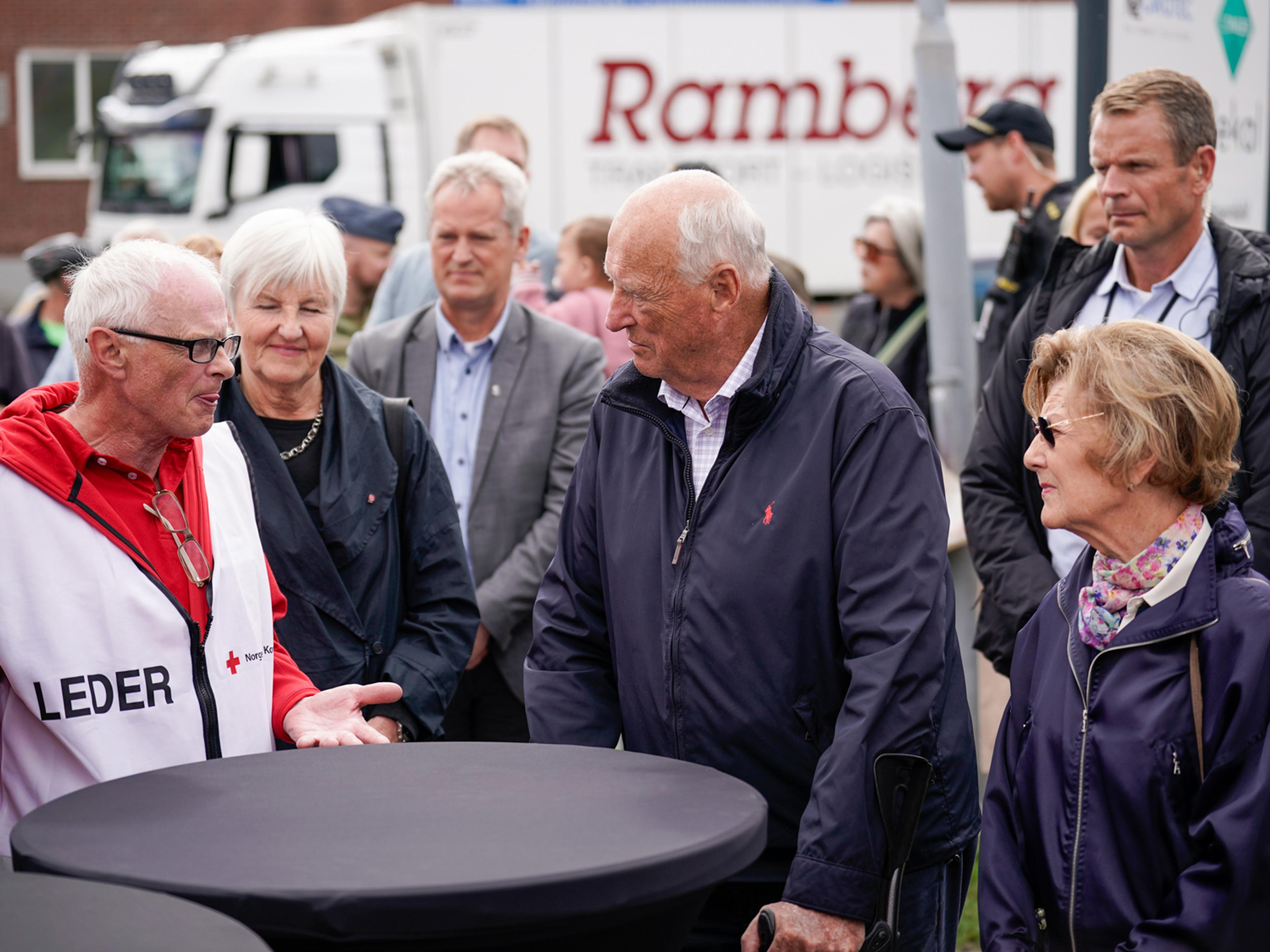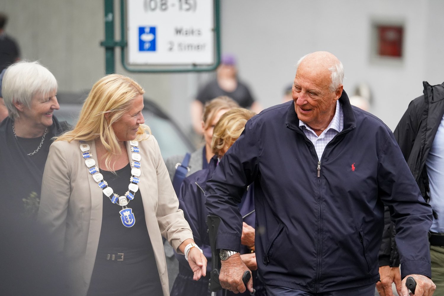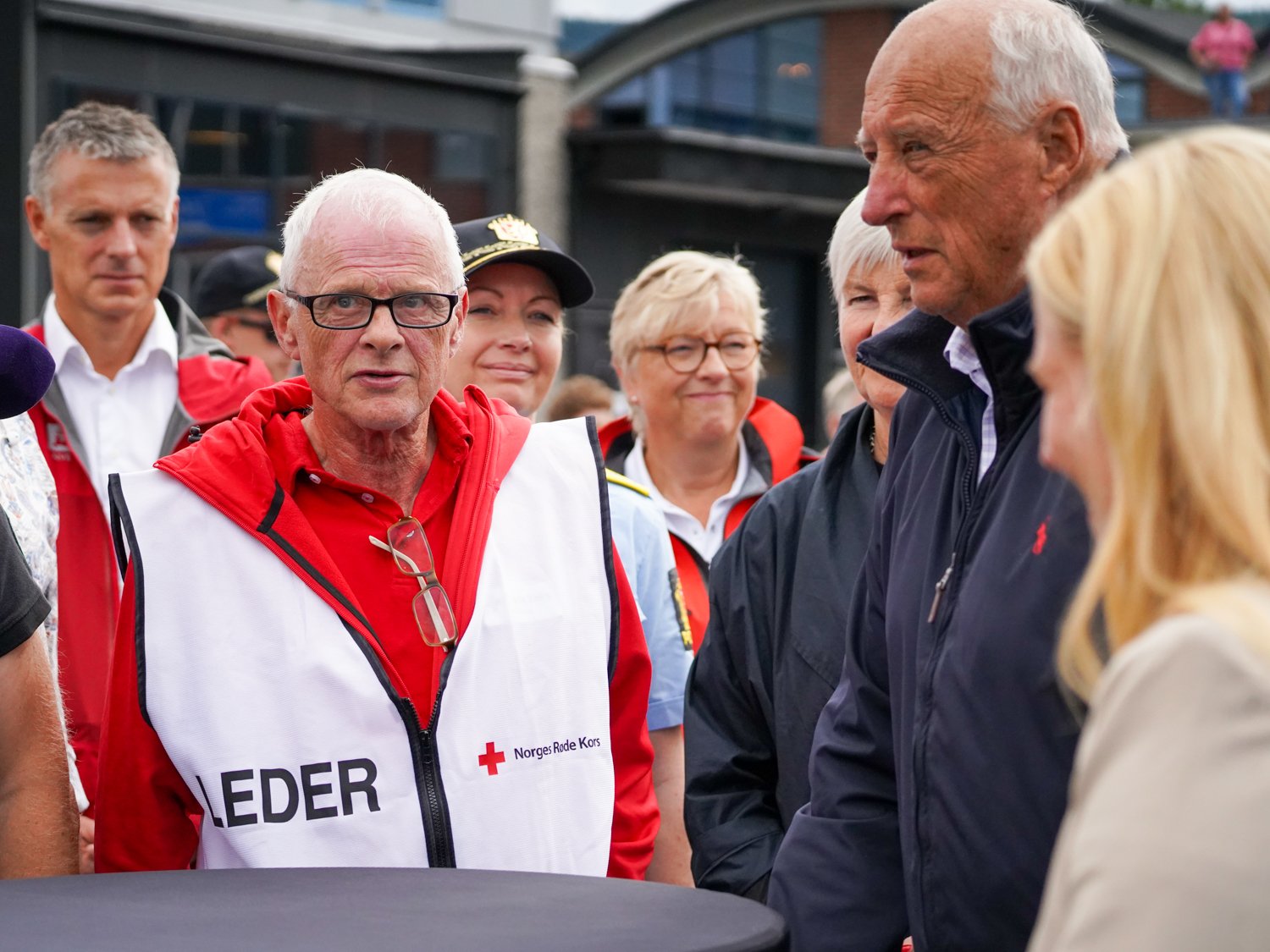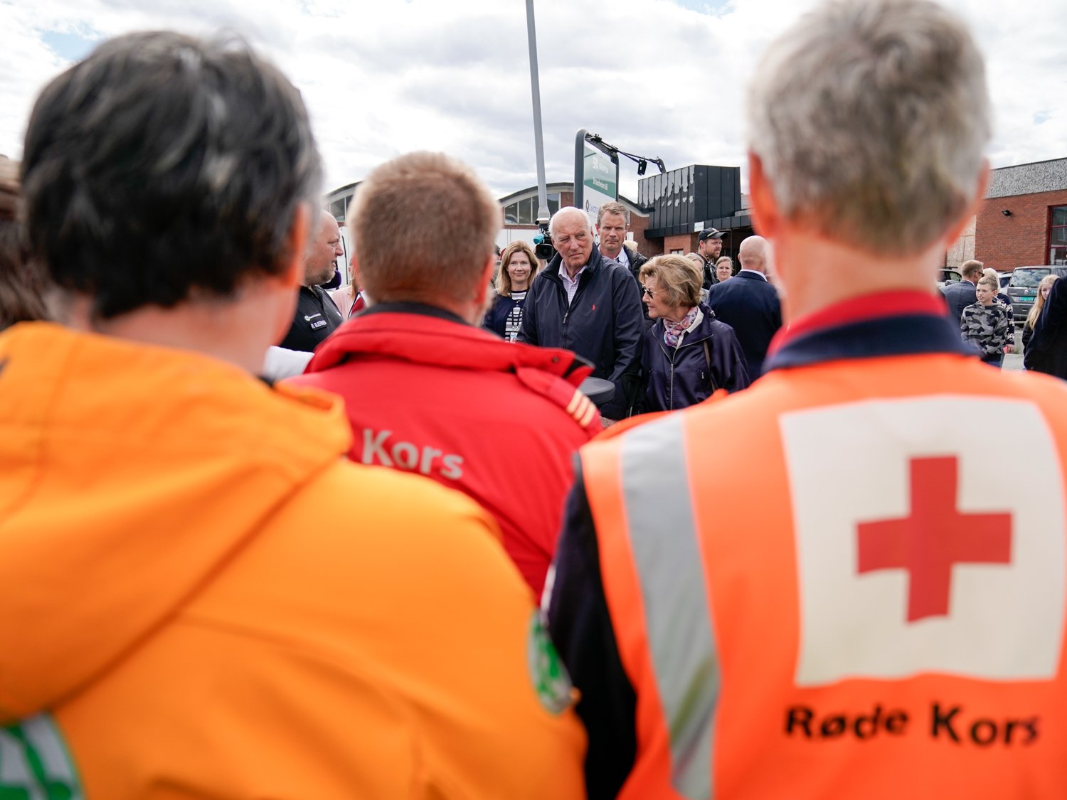 – Jeg vil bare berømme de som har stått på her og reddet det som reddes kunne. Fra politi til brannvesen, til alle etater, til frivillige, til naboer. Det er bare å takke alle for å ha gjort dette så det ikke har gått liv foreløpig, sa Kong Harald til fremmøtt presse.